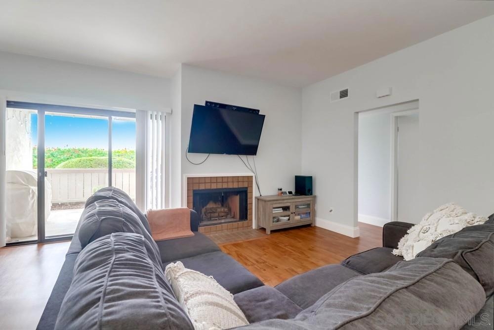 VA & FHA approved. Lower, single level two bedroom with mountain views and overlooking a green belt for privacy and enjoyment. New hard surface flooring and baseboards throughout. Kitchen with matching appliances and laundry closet opens to the living room framed on a fireplace with access to the private patio. Master bedroom features a walk-in closet. Community pool and spa. One car garage and an additional assigned parking space. Easy access to freeways, shopping, restaurants and more. Other Fees: 0 Sewer: Public Sewer Topography: LL