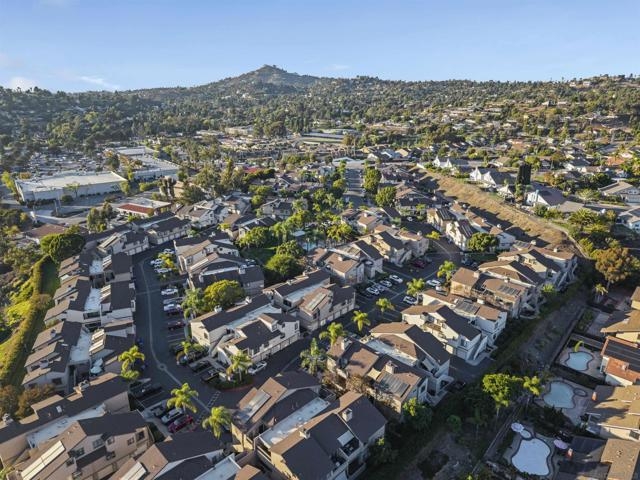 Welcome to Avocado Village Ct # 140. Situated in a serene community - this top level corner condo offers privacy and scenic hillside views. Features include vaulted ceilings, fireplace, in unit laundry, A/C, updated flooring and new recessed lighting. The kitchen offers modern appliances that were updated this year. Enjoy the private patio with stunning views and large glass slideres from both the primary bedroom and living room. Just a few steps away from your 1 car garage with ample storage and shelves. And an additional dedicated parking spot located near the unit. Enjoy the well maintained walking paths and community pool & spa. Located near parks, shopping, dining and major freeways. HOA covers water and trash.
