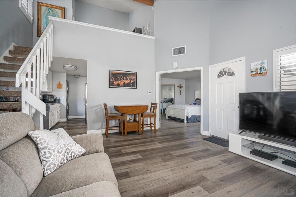 GOOD THINGS COME IN SMALL PACKAGES! This beautiful home is completely remodeled, with Granite counter tops in the kitchen and bathroom. Master bed with mirror closet doors, all new wood floor downstairs, all carpet upstairs, LOFT/BEDROOM 2 has a closet and huge storage space and attic. Open vaulted ceilings, new paint, Washer/Dryer is included. Private front patio. No one living above and below you. Easy access to 94 freeway and shops. THIS PROPERTY IS A MUST SEE! Complex Features: , Equipment: Dryer, Washer Sewer: Sewer Connected