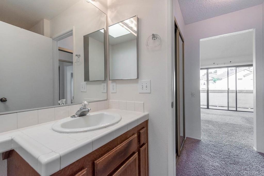 Desirable corner upper unit with 2 balconies off each master suite. The best view in the community overlooks the sparkling pool and green belt. Everything you need in this largest unit floor plan with vaulted ceilings, cozy fireplace and washer/dryer closet inside unit, with easily accessible 1 car garage and additional parking space. Light and bright with sun shining in!