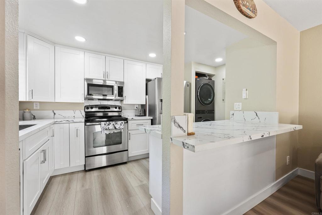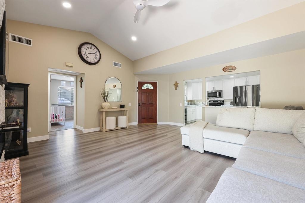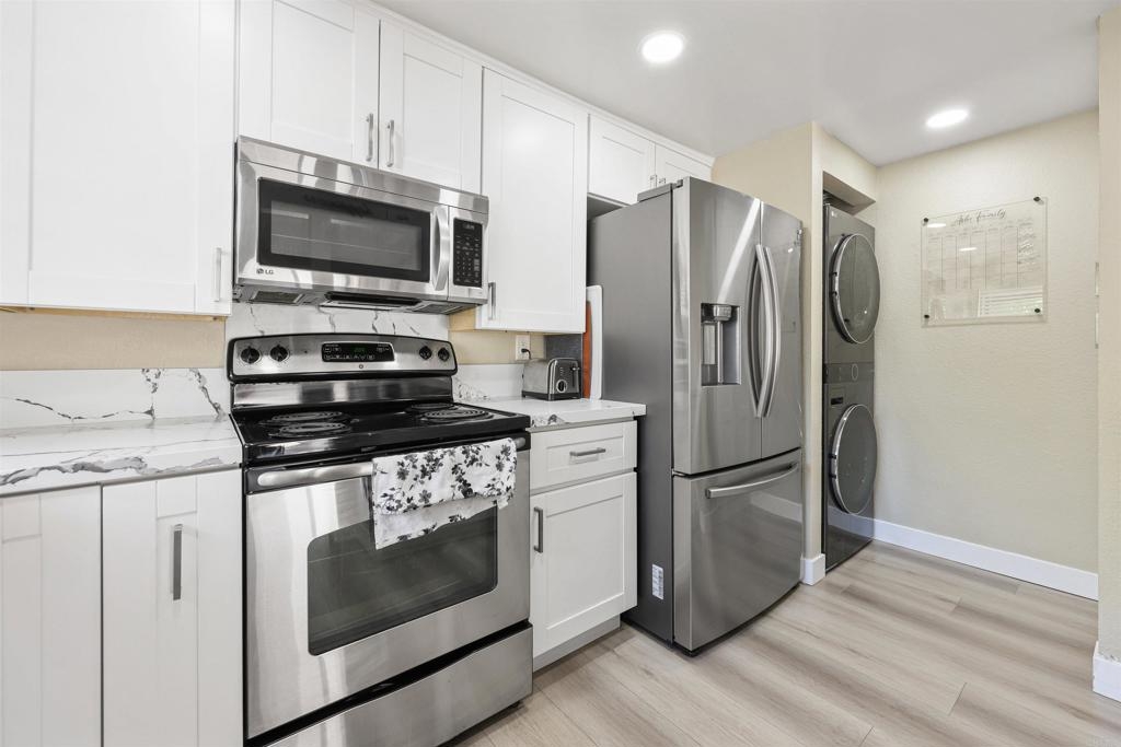 Stylishly Remodeled 2-Bedroom with Modern Comforts & Natural Light Step into this beautifully remodeled 2-bedroom, 1-bath home that combines modern finishes with comfortable living. Featuring soaring high ceilings and large windows, the space is filled with natural light and an airy ambiance. The open floor plan boasts sleek vinyl flooring throughout, creating a seamless flow from room to room. 1 detached car garage. Enjoy the convenience of in-unit laundry and a private balcony perfect for morning coffee or evening relaxation. The fully updated kitchen and bathroom offer clean, contemporary design with quality fixtures and finishes. With every detail thoughtfully updated, this move-in-ready home is ideal for both first-time buyers and savvy investors. Don’t miss the opportunity to own this stylish, low-maintenance gem in a desirable location!