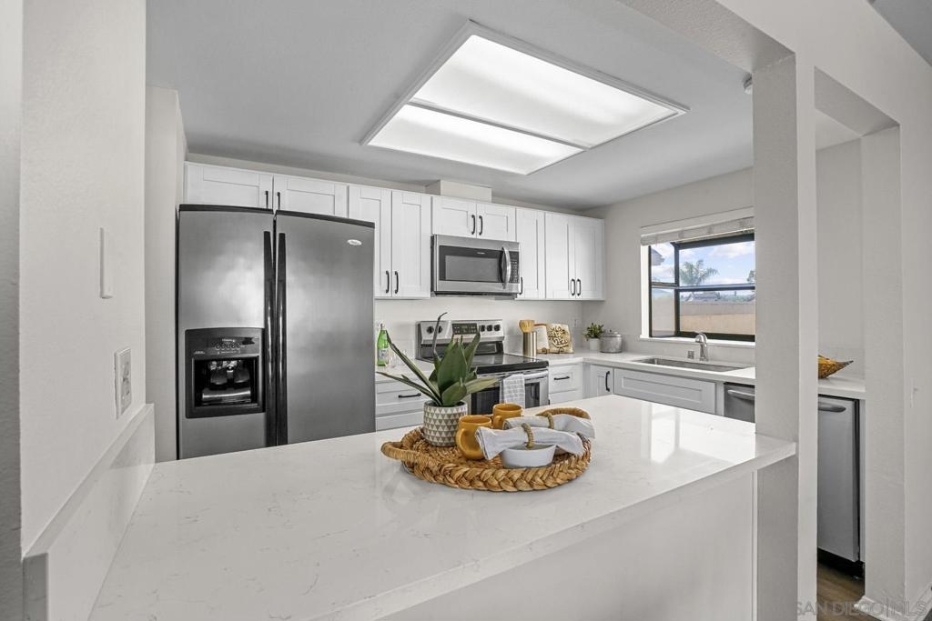 Welcome to your cozy retreat nestled in the heart of Avocado Village! This charming 2 bedroom, 1 bath condo offers the perfect blend of comfort and convenience. As you step inside, you're greeted by a warm and inviting living space complete with a delightful fireplace, ideal for those cool evenings or simply creating a cozy ambiance year-round. The well-appointed kitchen features all appliances and ample cabinet space, making meal preparation a breeze. Enjoy casual dining at the breakfast bar or gather with loved ones in the adjacent dining area. The condo has two generously sized bedrooms, each offering comfort and privacy. With plenty of natural light streaming in, these rooms provide a peaceful sanctuary to unwind after a long day. Convenience is key with this property, as it comes with a one-car garage and an additional assigned parking space, ensuring parking is never a hassle for you or your guests. Located in the desirable Avocado Village community, residents enjoy access to a range of amenities, including lush green spaces, walking paths, and community pool. Don't miss the opportunity to make this delightful condo your own! Experience the charm of Avocado Village living. Pending cancellation of current escrow.