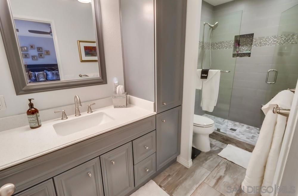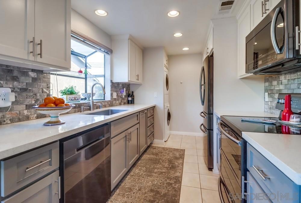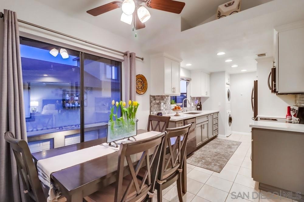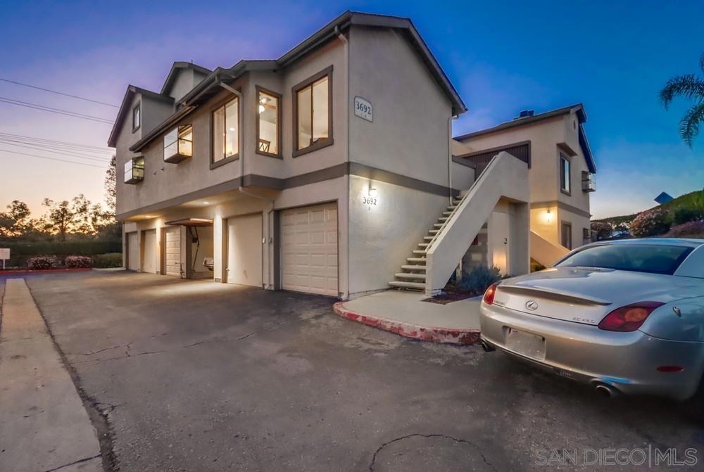 Welcome to this beautifully renovated condo featuring 1 bedroom/1 bath in the sought after community of Avocado Estates. The home has vaulted ceilings with tons of natural light and stunning sunrise views from the living room. Enjoy the expansive feel of the main living area, making it an ideal space for hosting gatherings or working from home. The modern kitchen boasts extensive counter space for culinary adventures and ample storage with a stackable washer and dryer. The bedroom is generously sized, featuring a large closet and an abundance of sunlight. Experience luxury in the fully upgraded bathroom, reminiscent of a high-end spa retreat. Outdoor enthusiasts will appreciate the large patio, perfect for enjoying morning coffee or evening wine, set up as an extension of your living space or a cozy outdoor dining area. This home offers convenient parking options, including a one-car garage with additional storage for various items and extra parking within the community. Residents have access to beautiful parks, walking trails, and a community pool, all within easy reach of downtown San Diego via Route 94. This pet friendly community and its array of amenities make this home a must-visit.