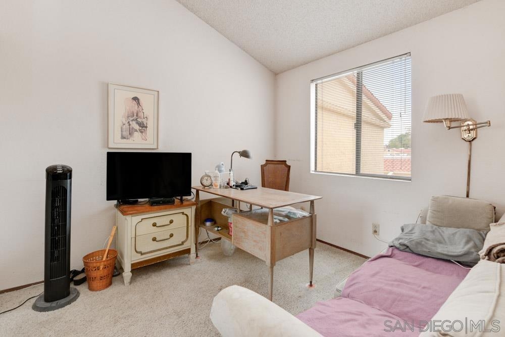 Discover the largest 3-bedroom floor plan in Daybreak, offering nearly 1,500 square feet of living space! This home features two private patios, perfect for relaxation and entertaining. The living room boasts soaring 11-foot ceilings, a cozy fireplace, and French doors that open onto one of the patios. The primary suite, is bright and airy with vaulted ceilings, fireplace, a walk-in closet, and a step-in shower. All bedrooms are conveniently located on the same level. The second outdoor patio, accessible from both the dining room and kitchen, is ideal for hosting guests. Located just minutes from Lake Murray Recreation Area, Del Cerro Tennis Club and Pickleball Hub, Cowles Mountain, Mission Trails, golf courses, and more, this home offers outstanding potential in a prime location. Residents of Daybreak are drawn to the community's park-like views, quiet neighborhood, and fantastic amenities, including a swimming pool and spa. With low HOA fees, you’ll enjoy easy access to restaurants, shops, services, entertainment, freeways, schools, SDSU, and Lake Murray. Agents: Please note, this property is a fixer and has been priced accordingly.
