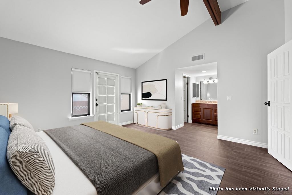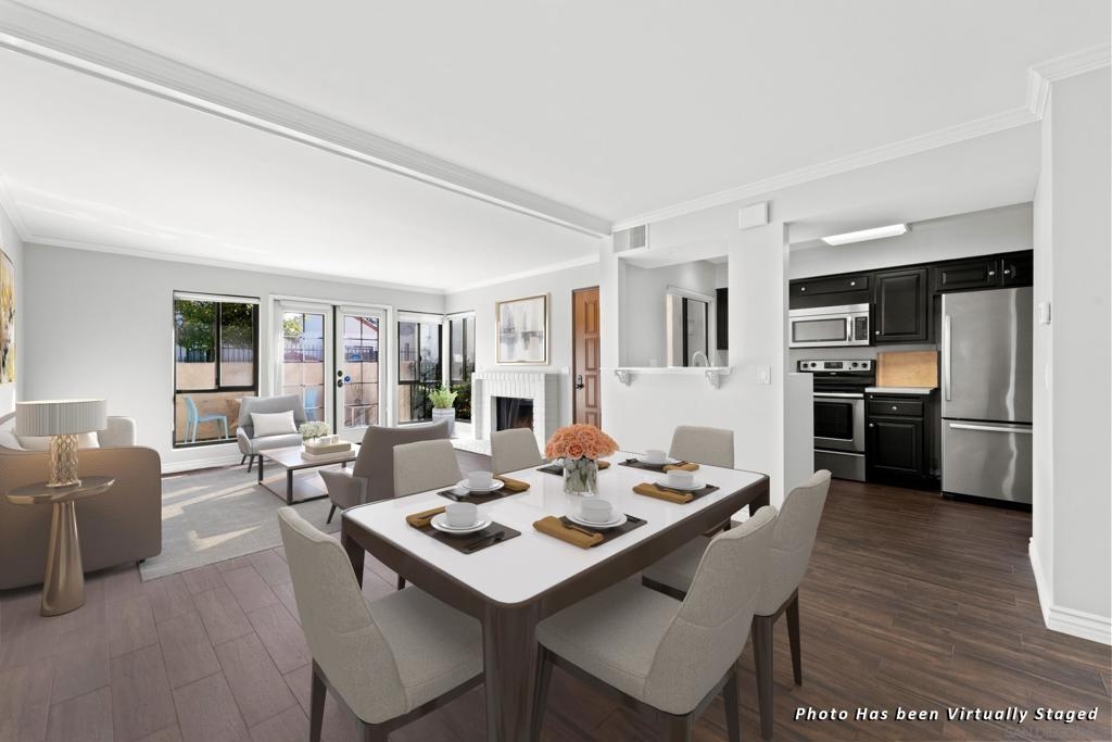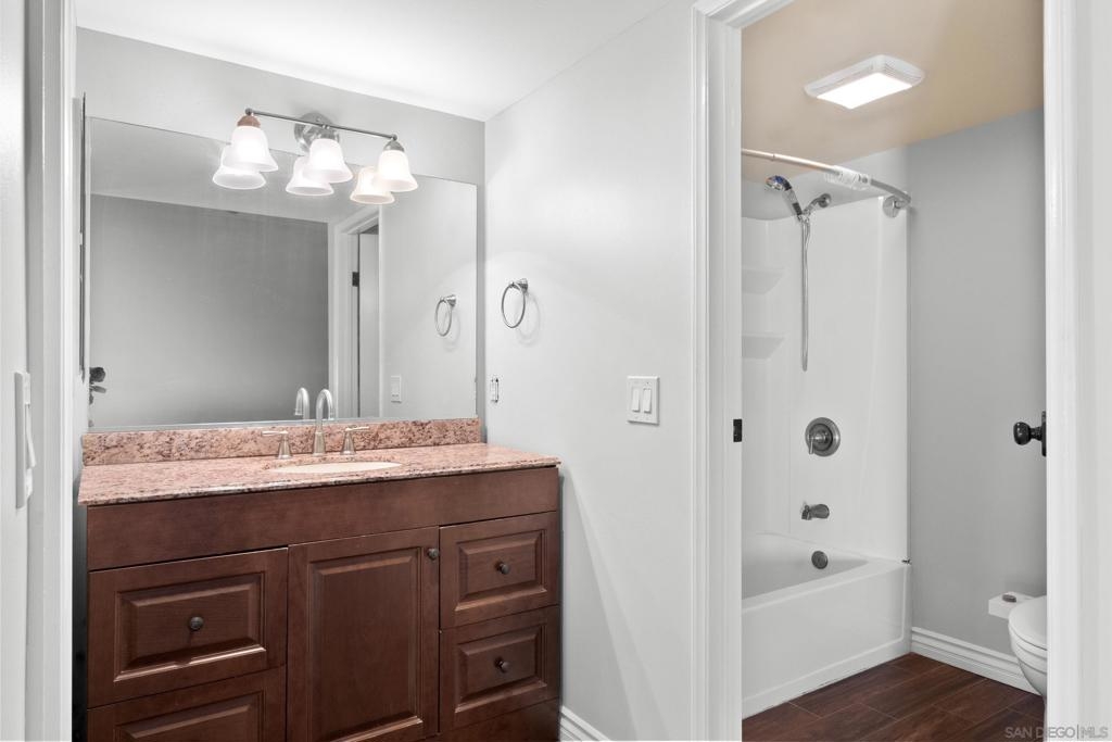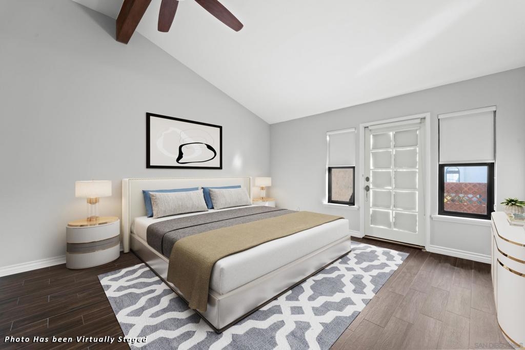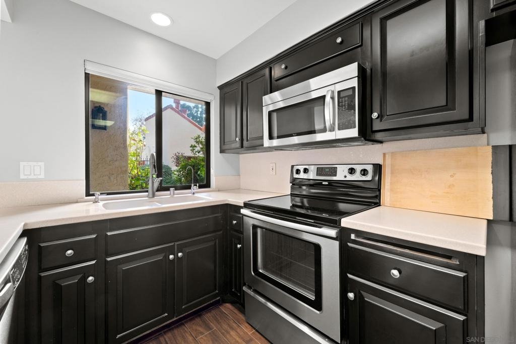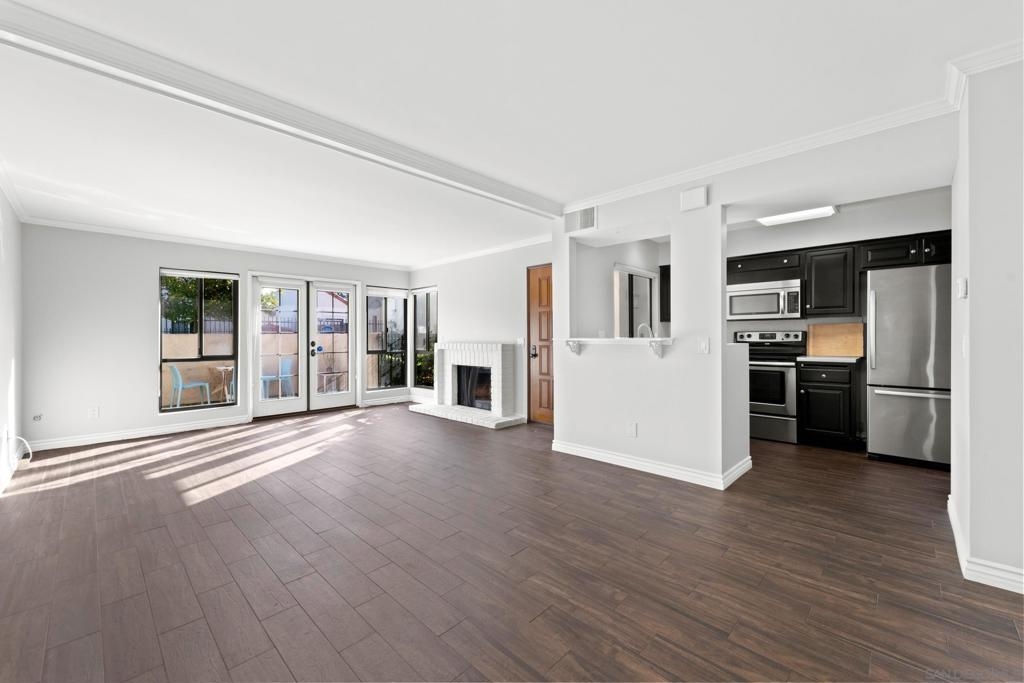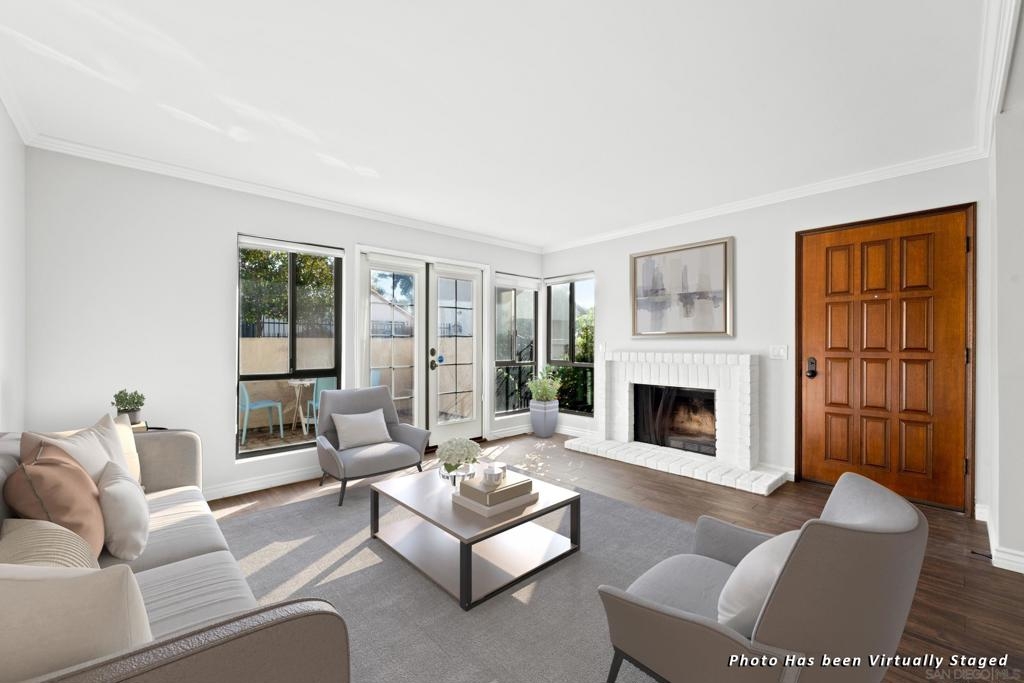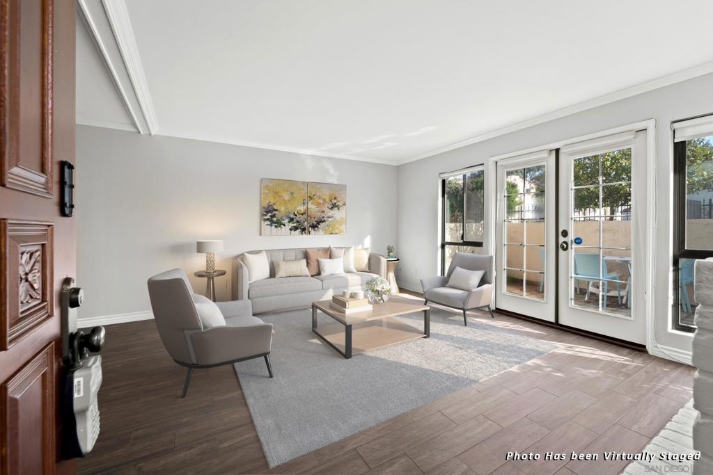 Highly desirable La Mesa Daybreak community home, located in one of the most desirable complexes in La Mesa! Remodeled kitchen with solid-surface counter tops and all stainless-steel appliances that convey. Ceramic plank wood flooring throughout with crown molding downstairs, no popcorn ceilings and quality window coverings throughout. Cozy brick fireplace in living room, with French doors leading to one of your two private patios. Master has its own walk-in closet and a private patio that includes a storage closet. Vaulted ceilings in all bedrooms. HVAC for warm summer days and cool winter nights. There is an attached 2-car garage including washer and dryer that convey. Also included is one assigned parking space as well as plenty of visitor parking. Well-kept grounds with sparkling pool and spa for swimming, lounging or to just get your feet wet on a warm day! Lake Murray is across the street and everything else is within walking distance. Reasonable $330/month HOA dues in this pet friendly community cover trash pick-up and exterior & common grounds maintenance. Daybreak's ideal location provides quick access to the I-8 freeway, making it easy to commute to downtown San Diego, SDSU, Grossmont College, Mission Trails Regional Park, Costco and Grossmont Hospital. Grocery stores and public transportation are within walking distance, adding to the convenience of living in this fantastic area of La Mesa. Wonderful place to call home and so convenient to anywhere you need to get to!