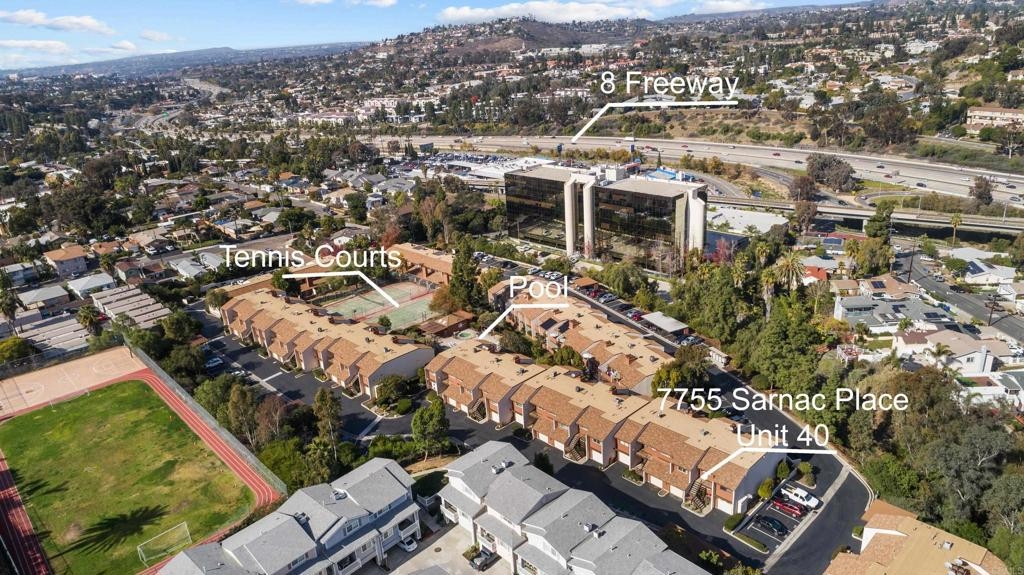 First time on the market in over 40 years! Upstairs END UNIT with no attached neighbors on the East side of the home. Ideal location in the heart La Mesa. Walk/Bicycle to local schools, universities/colleges, stores, shopping, restaurants, public transportation, parks and many other local amenities. Located near the end of a cul-de-sac style street. Elevated above the other homes to the north and no attached buildings to the South creates an abundance of natural light in all rooms. Fresh paint and carpet throughout. Brand new appliances and professionally painted kitchen cabinets with new hardware. Private stairs lead up to your front entryway. Fireplace in the living room with vaulted ceilings and over-sized balcony with plenty of space for outdoor living. Both bedrooms and bathrooms are larger than average. The primary bedroom is en suite with vaulted ceilings. Community has private swimming pool/spa area and TENNIS/Sports Courts. One assigned parking space in addition to the private one car garage. Seller can accommodate a quick close.