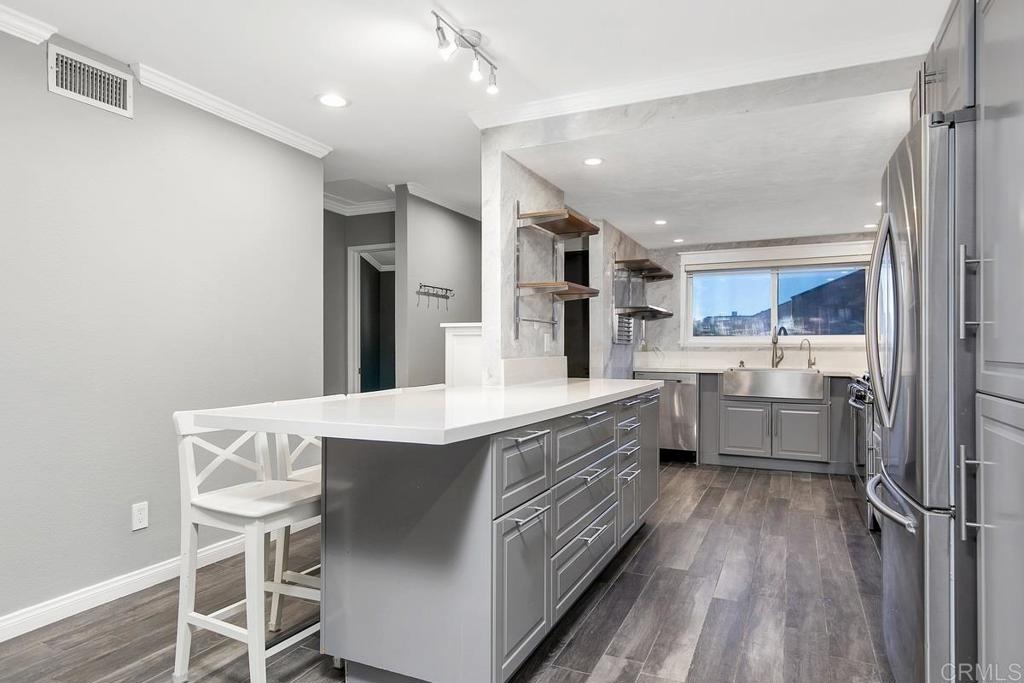 A newly renovated 2 bed, 2 baths condo meticulously designed to a high standard. The property has a fabulous open plan kitchen and reception room fantastic for entertaining or being used as informal family areas. One master bedroom en-suite, second generous bedroom further-side. Washer/Dryer laundry room included and a charming balcony. Double garage parking lot, Water filter, Swimming pool and Tennis court. This condo located conveniently close to Hwys, restaurants and store.