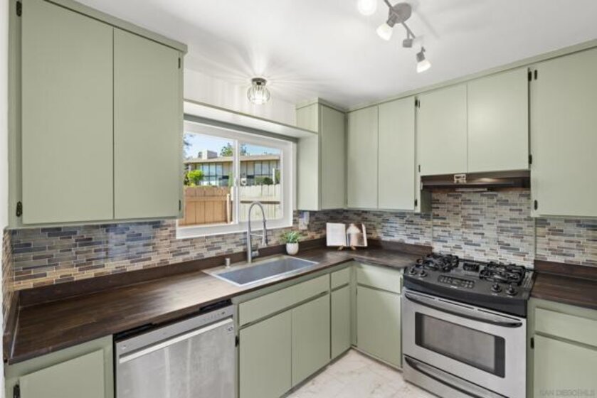In the Heart of La Mesa, welecome to this rarely available bright end-unit condo with high ceilings and tons of natural light throughout.This move-in ready 2 bed, 1.5 bath home features a functional layout, central A/C, and in-unit laundry for everyday convenience. The open living space feels airy and inviting, with tons of natural light pouring in from multiple windows. Ideally located just minutes to the mall, coffee shops, Trader Joe’s & more. Close to both the 8 and 125 freeway.VA and FHA approved.