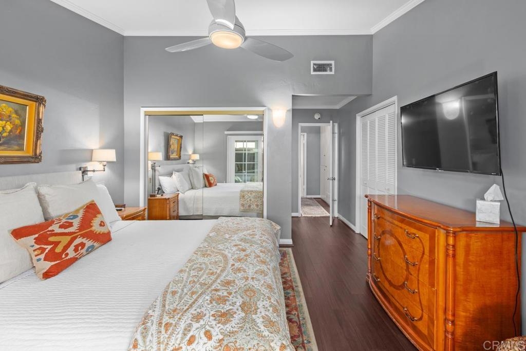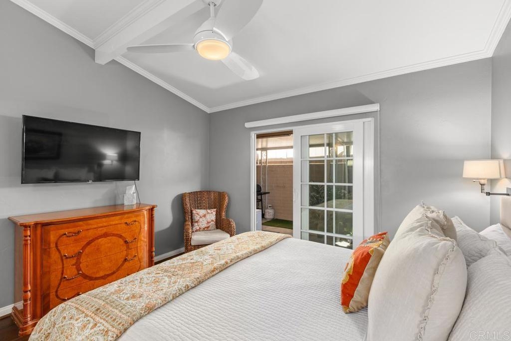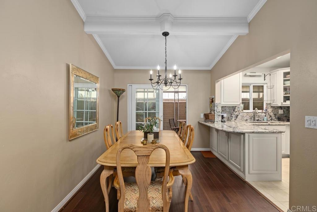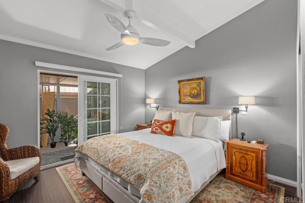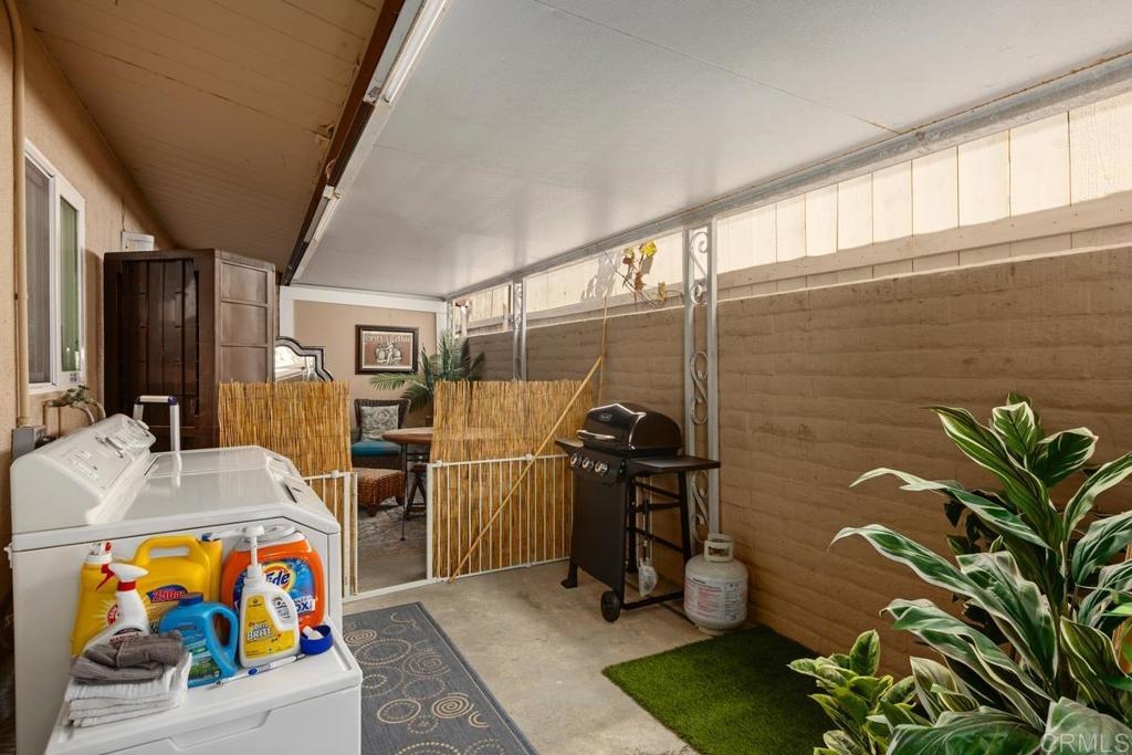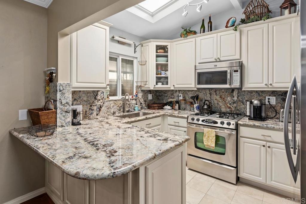 Welcome to a truly warm and inviting home! This spacious end unit has been upgraded with new wood flooring, updated kitchen, newer furnace and air conditioner, new fireplace mantle and more! Huge patio is perfect for entertaining and there is LAUNDRY on the patio. Vaulted ceiling with skylight in the living room floods the space with natural light. Exclude curtains in living room and bedrooms as well as two sconces in primpary bedroom. 2 dogs allowed not to exceed 30lbs. Parking space is 6H (carport). Complex is FHA approved and can go VA!