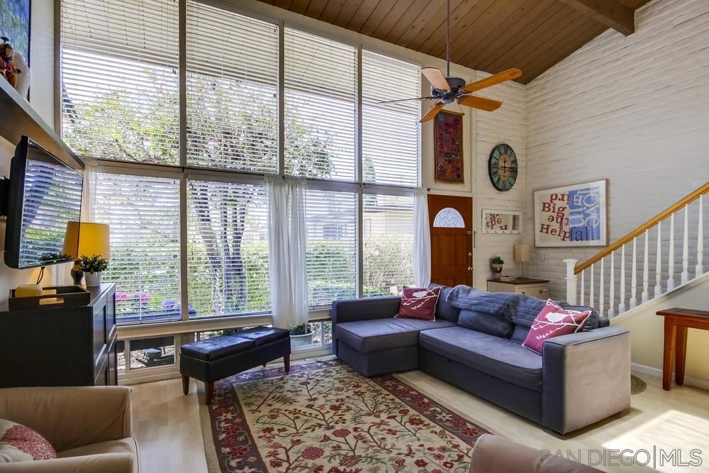 This beautiful townhome will go quick! Rarely Available corner unit with double-height vaulted ceilings, skylight and wall of windows make this home light and bright. Private enclosed patio has lots of storage & Laundry room. All appliances less then a year old!!! Newer dual-paned windows & central A/C keep it ice cold. Grossmont Village is gated and private with beautiful manicured grounds, mature trees, 3 pools (1 heated), lots of parking (RV too) & two club houses nestled in the foothill of La Mesa! Additional Interior features Include newer dual paned windows for maximum cooling and insulation. All appliances are less then a year old(Samsung & GE)!! Rare corner unit with Central AC, yes no window AC, Central cooling & heating!!!! Only three units in building extremely quiet location! No road noice. Grossmont village boasts beautiful manicured grounds, mature trees, 3 pools(1 heated), lots of parking(RV too), and two club houses nestled in the foothills of La Mesa! Come see, this beautiful townhome before its to late!!! Complex Features: ,,,, Equipment: Dryer, Range/Oven, Washer, Water Filtration Other Fees: 0 Sewer: Sewer Connected Topography: LL