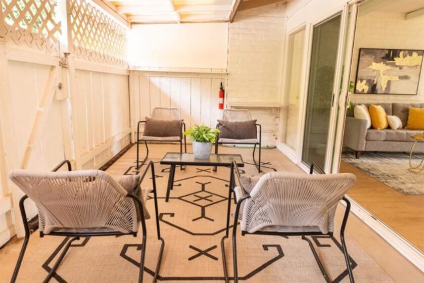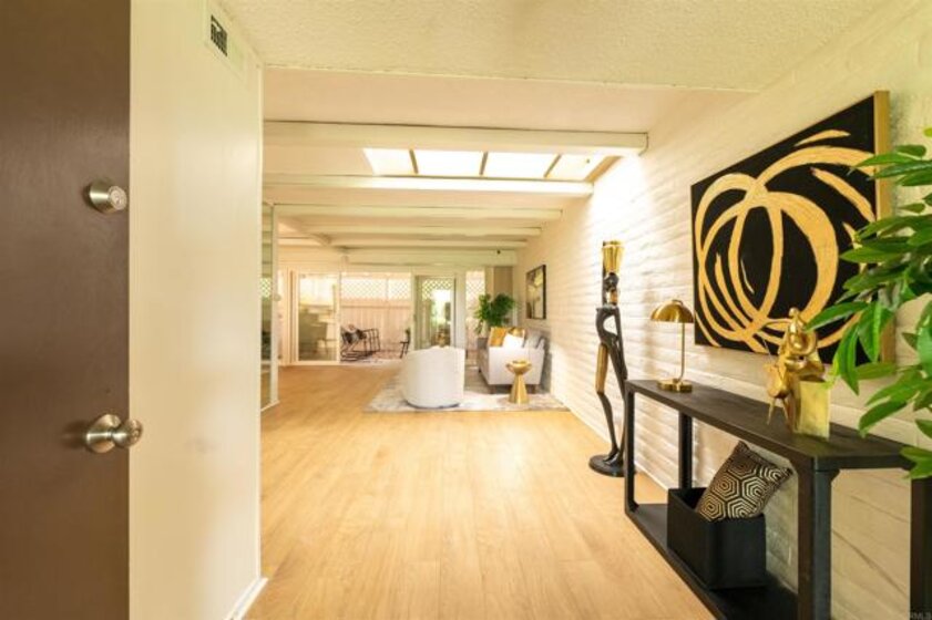 Welcome to this beautifully refreshed 1-bedroom, 1-bath condo in the highly sought-after Grossmont Village community of La Mesa. Offering 740 square feet of comfortable living space, this home is ideally positioned within a serene, park-like setting featuring expansive greenbelts, mature trees, walking paths, a sparkling pool, and clubhouse. Recently updated and move-in ready, the interior has been freshly painted throughout and showcases newer light wood-tone LVP flooring that enhances the home’s bright and airy feel. The spacious living area opens seamlessly to a large enclosed patio through a dual-pane 6-panel slider, creating flexible indoor-outdoor living space—perfect for relaxing, entertaining, or a home office setup. The patio also includes a convenient in-unit washer and dryer. The bedroom is generously sized and filled with natural light from large windows overlooking the lush greenbelt, offering peaceful views and a tranquil atmosphere. Dual-pane windows throughout provide added comfort and energy efficiency. Additional highlights include a roof replaced by the HOA last year, an assigned covered carport space with storage, and a permit for a second vehicle in the open parking area. Enjoy resort-style living in a beautifully maintained community, all conveniently located near shopping, dining, and public transportation. An excellent opportunity for first-time buyers, downsizers, or investors seeking value in a quiet, well-kept community.