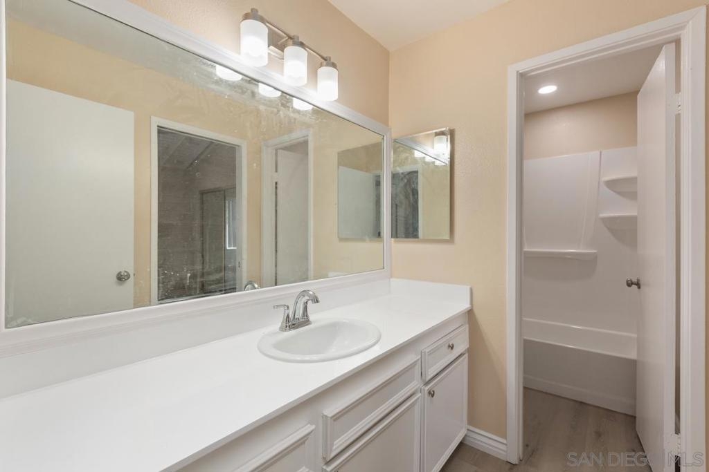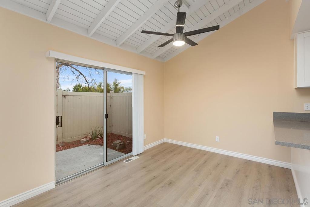 Tucked away above the 8 freeway, this 2 bed 1 bath townhome has all there is to offer. A quiet community with common amenities like pool, hot tub, and tennis courts at your disposal. Rare open south view. The home offer upgraded kitchen, plank flooring, paint, light fixtures, tub and shower enclosure and the list goes on. Dual sliding doors lead to south open view patio. Great Value.