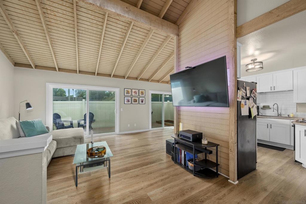 Beautifully renovated end-unit in conveniently located La Mesa Racquet & Swim Club! Enjoy high vaulted ceilings in the living and dining area leading to a private, secluded back patio. The home boasts a renovated kitchen with granite counters, all new cabinets, new dishwasher, stainless steel appliances, a large stainless-steel sink, and a new over-the-range microwave. The completely new bathroom features a modern aesthetic with a LED touch-sensitive mirror. Additional oversized loft (approx. 150 sf.) ideal for an office, hobby or storage room. The possibilities are endless! Attached 2-car garage with valuable extra storage (approx. 100 sf). Enjoy new windows with a lifetime warranty, vaulted ceilings with open beams, and central AC/Heat for year-round comfort. A raised garden bed on the back patio adds a touch of charm and functionality. As an end unit with only one shared wall, appreciate the added peace and privacy. The community offers fantastic amenities including a pool, hot tub, tennis courts, and the security of 24/7 video surveillance. This pet-friendly community is ideally located near Lake Murray, shopping centers, diverse restaurants, and provides easy freeway access. This move-in ready gem with its extensive upgrades is a must-see!