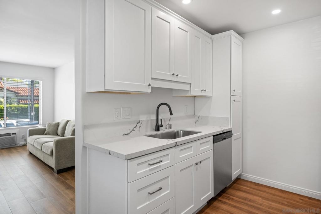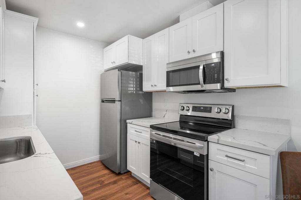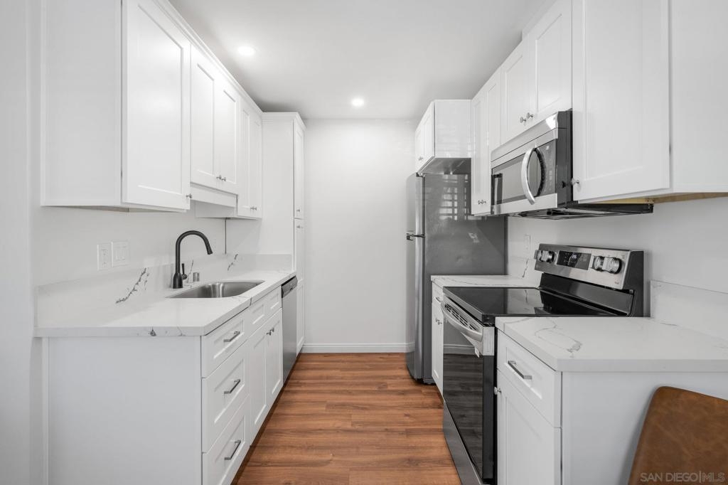 Discover this fully updated 2 bedroom, 1.5 bath condo in the vibrant heart of La Mesa Village. Featuring luxurious vinyl plank flooring, a modern kitchen with new cabinets, quartz countertops, and new appliances. Both bathrooms are refreshed with new vanities and tiled floors. Large closet in both rooms and large linen closet in the hall. Enjoy the convenience of living steps away from top restaurants, bars, coffee shops, salons, parks, and shops. Experience urban living at its finest in this chic, centrally located home.