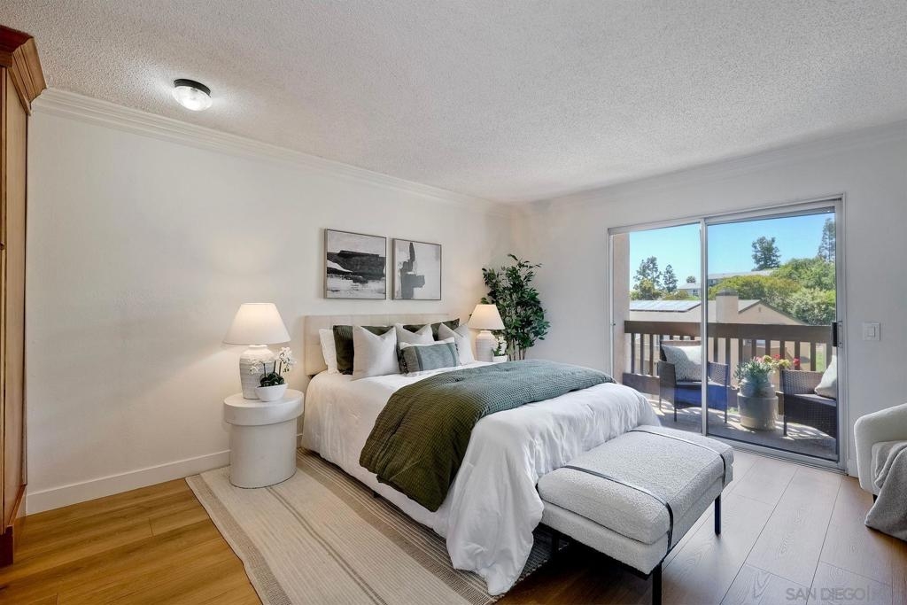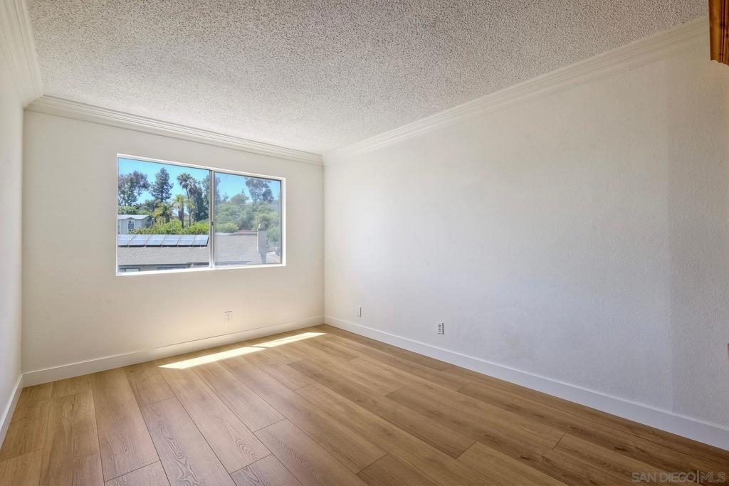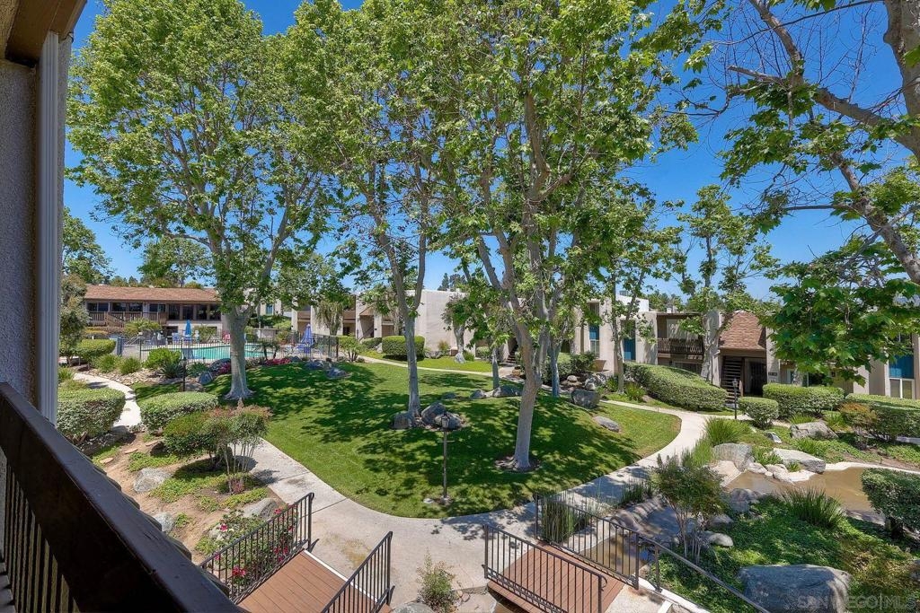 Discover Paradise in La Mesa! Rarely Available End Unit with Scenic Views of Mt. Helix! Discover the perfect blend of comfort, style & convenience in this beautifully upgraded 2-bedroom, 2-bath condo, tucked away in the tranquil, park-like community of La Mirianda. Enjoy peaceful waterfall features, lush landscaping, picturesque waterways w/ charming bridges, & mature trees—all just steps from your door. This inviting unit boasts fresh paint, brand-new wide-plank laminate flooring, new baseboards & two private balconies ideal for relaxing or entertaining. A cozy gas fireplace & central A/C & heating ensure year-round comfort. Elegant touches such as crown molding & genuine rosewood doors add warmth & character throughout the home. The upgraded kitchen & bathrooms feature granite countertops & rich, solid oak cabinetry—combining timeless beauty with everyday functionality. Complex offers a wide range of community amenities, including a sparkling pool, spa, clubhouse with pool table, fitness center & sauna, two large laundry facilities & ample guest parking. Location is unbeatable! Just minutes from Lake Murray’s scenic hiking, biking & fishing spots. Convenient access to SDSU, Grossmont College, Costco, CorePower Yoga, Grossmont Center, major freeways & only 5 minutes to vibrant downtown La Mesa. Additional features include 2 assigned parking spots - one is a covered carport w/ 2 spacious storage closets. Don’t miss this turnkey opportunity to live in one of La Mesa’s most desirable communities—where natural beauty meets modern convenience. VA Approved for eligible buyers!