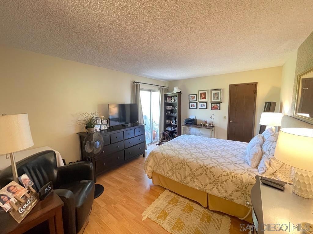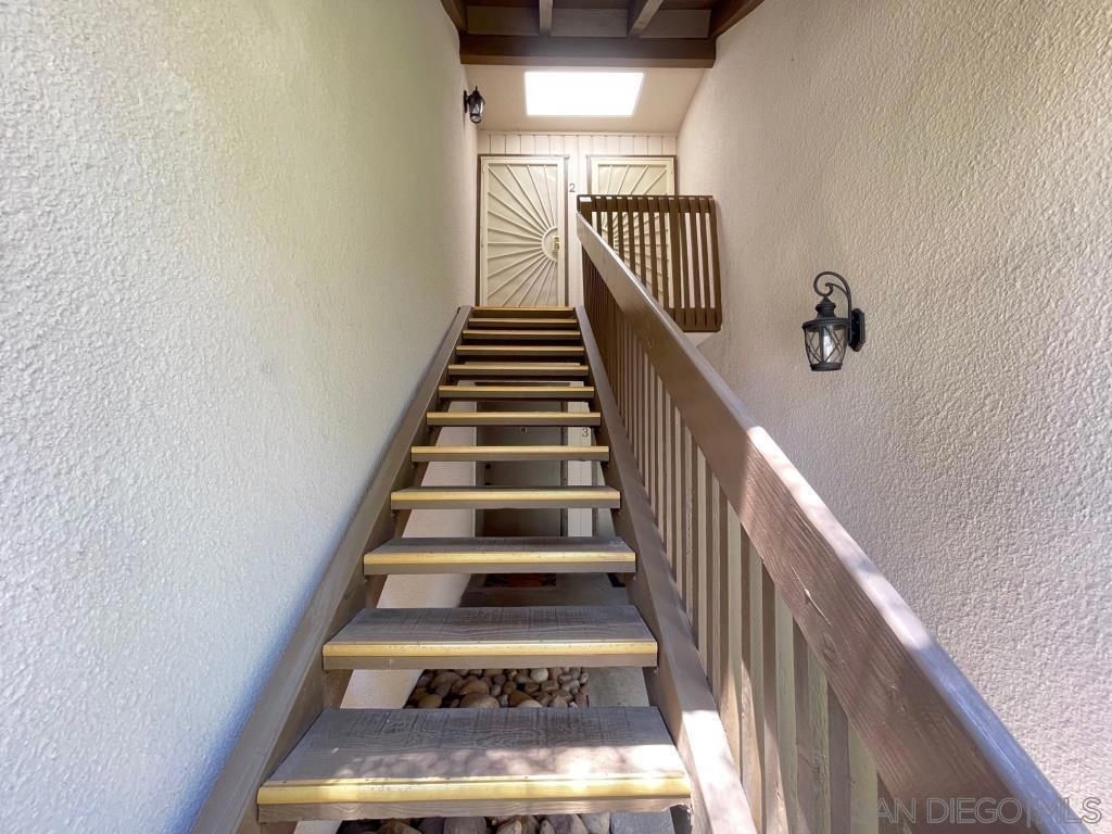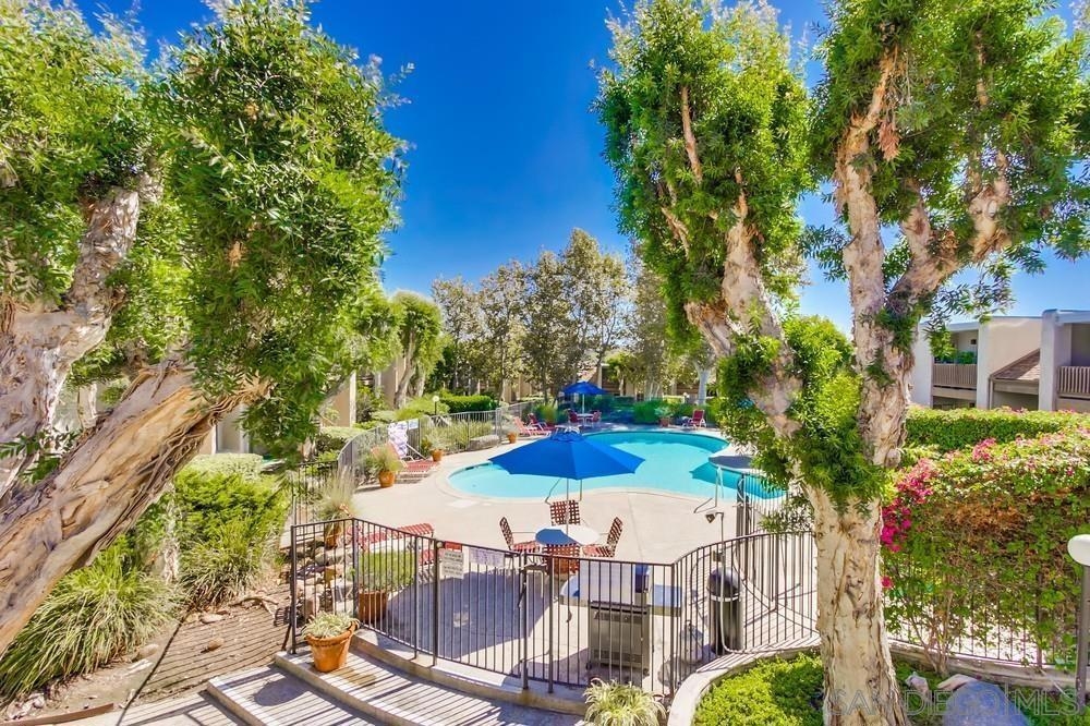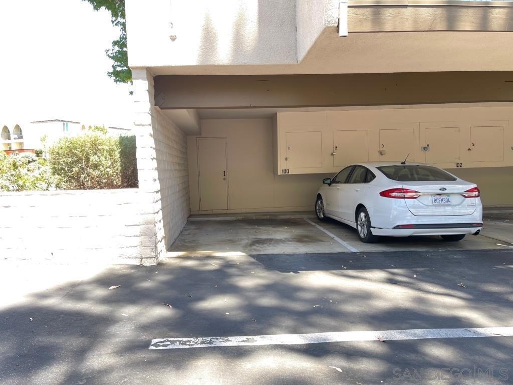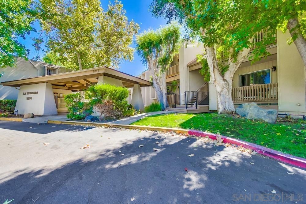 Desirable 2nd story condo in peaceful complex with beautiful landscaping. Well maintained unit features laminate wood flooring, sunny living room with fireplace and balcony, large bedroom with private balcony and walk-in closet, central heat/AC and covered parking space with storage locker. Luxury complex with swimming pool, spa, clubhouse and community laundry room. HOA Fee includes water, trash and gas to fireplace. Central location close to shopping and 8 freeway. Bus stop in front of complex and a short walk to Lake Murray. Sewer: Sewer Connected Topography: LL