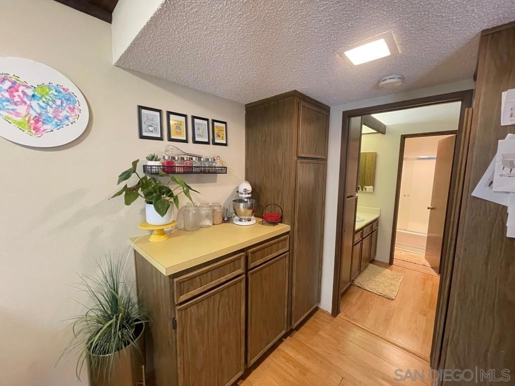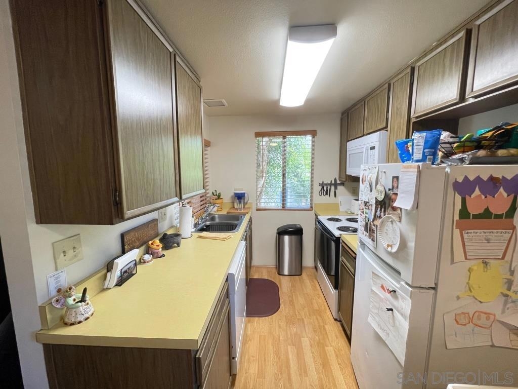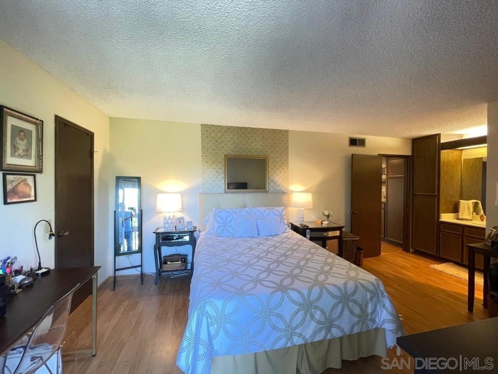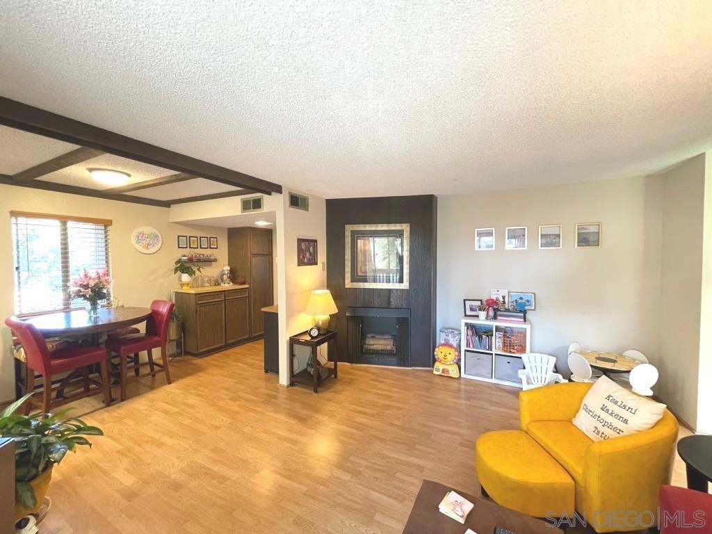 Desirable 2nd story condo in peaceful complex with beautiful landscaping. Well maintained unit features laminate wood flooring, sunny living room with fireplace and balcony, large bedroom with private balcony and walk-in closet, central heat/AC and covered parking space with storage locker. Luxury complex with swimming pool, spa, clubhouse and community laundry room. HOA Fee includes water, trash and gas to fireplace. Central location close to shopping and 8 freeway. Bus stop in front of complex and a short walk to Lake Murray. Sewer: Sewer Connected Topography: LL