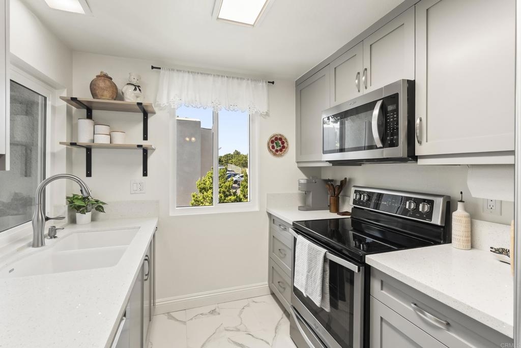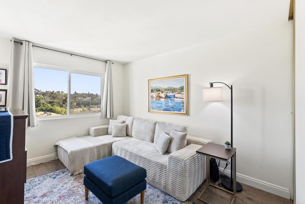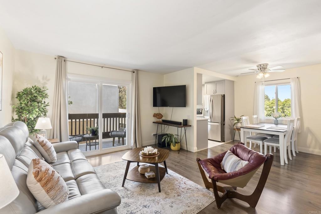 This light-filled 2 bed, 2 bath end unit is one of the few with a dining room window and offers rare privacy in a peaceful, well-maintained community. Enjoy two balconies with one overlooking lush landscaping, streams, and mature trees. Interior upgrades include new windows, a gas fireplace, central air conditioning and heat, ample storage, and a whole-building water softener system. The community features a pool and spa, and is minutes away from Lake Murray, 10 minutes from SDSU and 20 minutes from the beach. You're also conveniently close to freeways and all the everyday essentials. Includes two parking spaces and carport storage. Select furnishings may be negotiated with the sale.