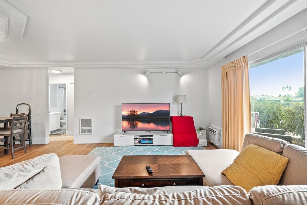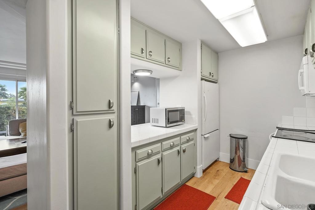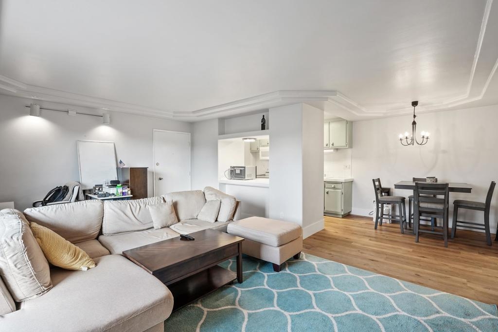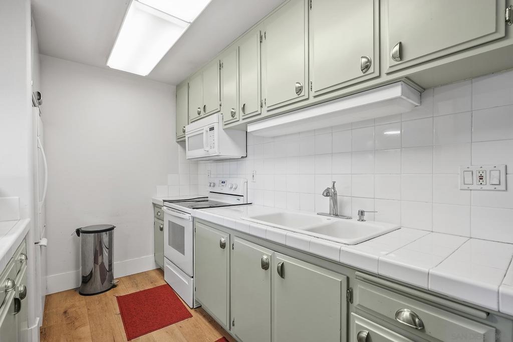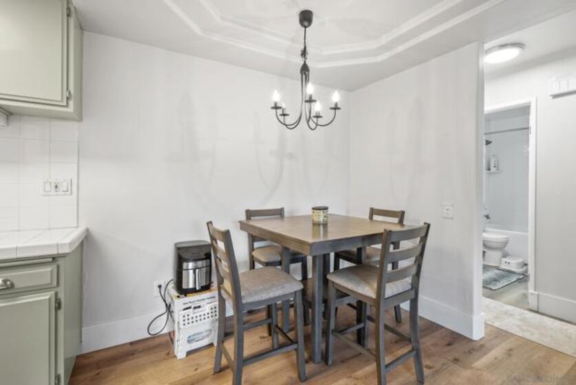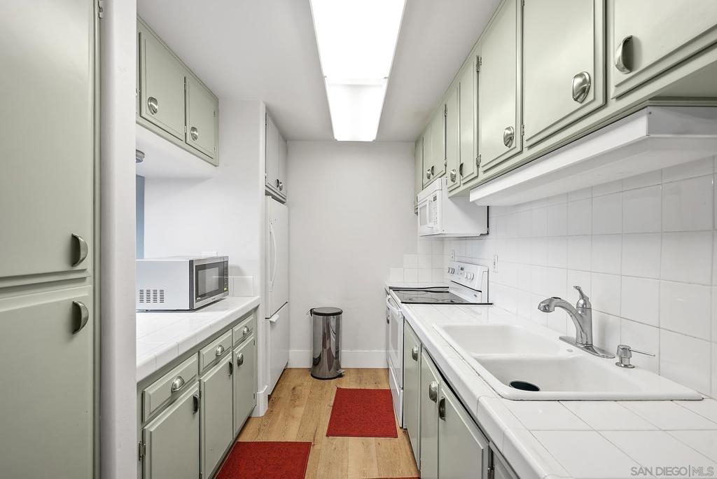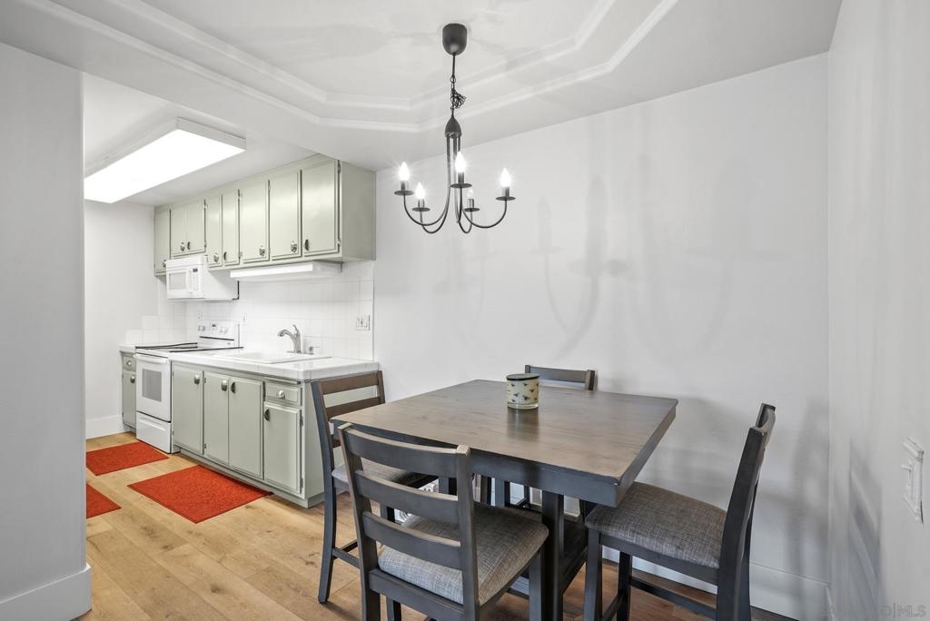 This first floor unit has some very nice upgrades! Beautiful laminate wood floors and Lovely coffered ceiling throughout .Stylish kitchen cabinets and hardware, with under cabinet lighting. Bedroom features Ceiling fan & large closet niced sized patio all this plus a parking space with ample parking for guests. Complex is equipped with an up to date gym, tennis courts & swimming pool. What more can you ask for?