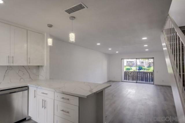 Completely Remodeled Town Home! Large spacious floor plan! Views from all rooms. Recessed lighting throughout with celling fans. New stainless steel appliance is kitchen with corian counter tops and large backsplash. New cabinets in kitchen and upgraded bathrooms with new cabinetry. Laminate wood flooring throughout. Half bath downstairs for guest use. Excellent location and well maintained community.
