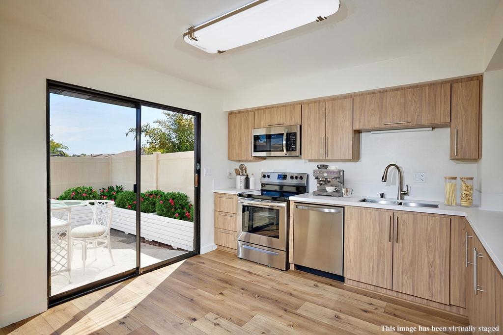Tucked high on the hill & now just turn the key. REMODELED, & HIGHLY UPGRADED end unit with fabulous view orientation. Located in the prime Lake Glen Park community. NEW NEW NEW - New flooring & interior paint throughout. New Kitchen - cabinets, fixtures, & open living concept. 1400 sq. ft of luxurious living space with an oversized upstairs bedroom & large master bedroom. Private rear patio living off the kitchen. Enclosed 1 car garage and 1 additional parking space. Amenities include pool, tot lot, tennis, clubhouse. Refurbished bathrooms. Laundry room inside the unit. Location, location, location with easy access to both the 8 and 125 freeway. Beautiful La Mesa living. NEW NEW NEW - New kitchen cabinets and fixtures! New flooring, new carpet, new baseboard, completely new interior paint, no more popcorn, refurbished and updated bathrooms,Kitchen with quartz countertops. Open concept! End Unit! Views! Amenities! Quiet Location! Complex Features: ,,, Sewer: Sewer Connected Topography: LL