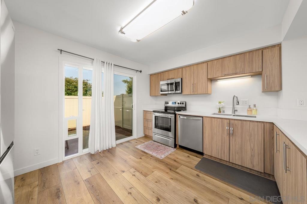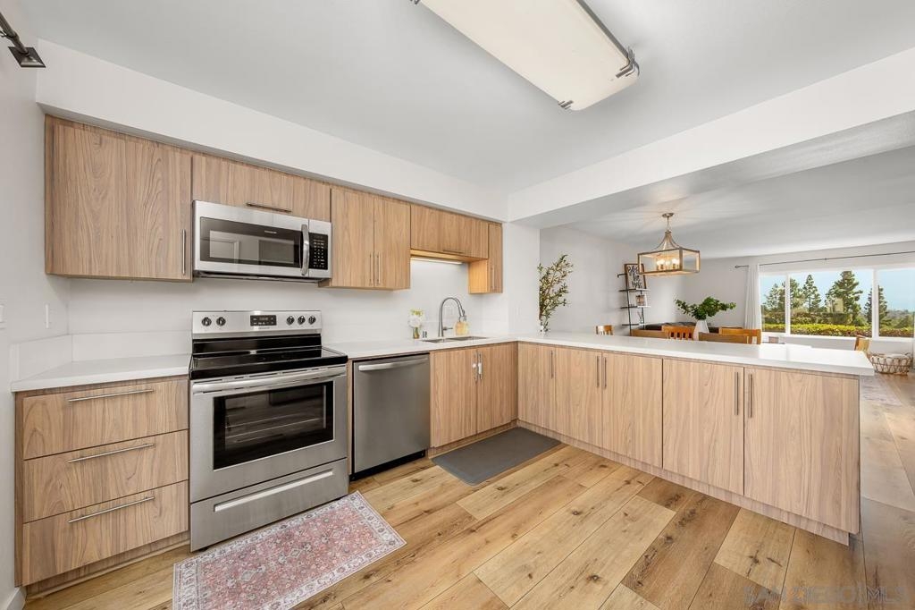 This beautifully remodeled end-unit condo is the perfect first step into homeownership. Tucked high on the hill in the desirable Lake Glen Park community, this home is completely move-in ready! Enjoy a fresh, modern feel throughout with new flooring, new carpet, updated bathrooms, and a completely redone kitchen featuring quartz countertops, new cabinets, and stylish finishes. The open-concept layout makes the space feel bright, spacious, and easy to enjoy. Whether you're relaxing at home or entertaining friends. With 1,400 sq. ft., this home offers room to grow, including a large upstairs bedroom and a spacious primary suite. There’s also a private patio perfect for weekend BBQs or morning coffee, plus in-unit laundry, an enclosed garage, and a second assigned parking spot. Live in a quiet community that feels like a retreat, complete with a pool, clubhouse, pickleball courts, and even a tot lot. Plus, you’re minutes from the 8 and 125 freeways, making your commute and errands easy. No big projects, no guesswork just a stylish, comfortable home you’ll be proud to call your own.