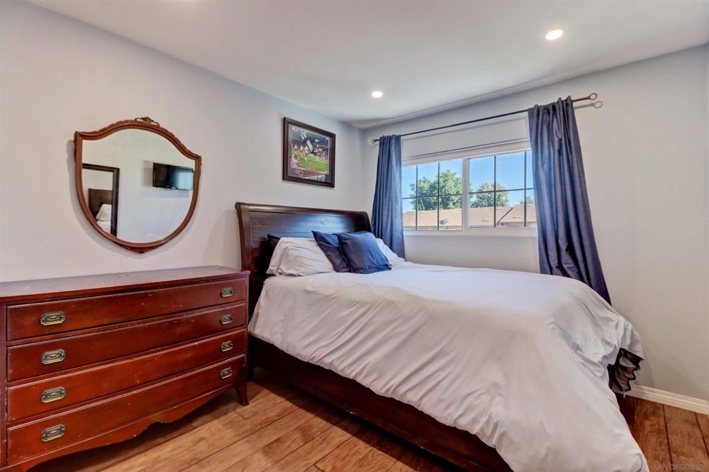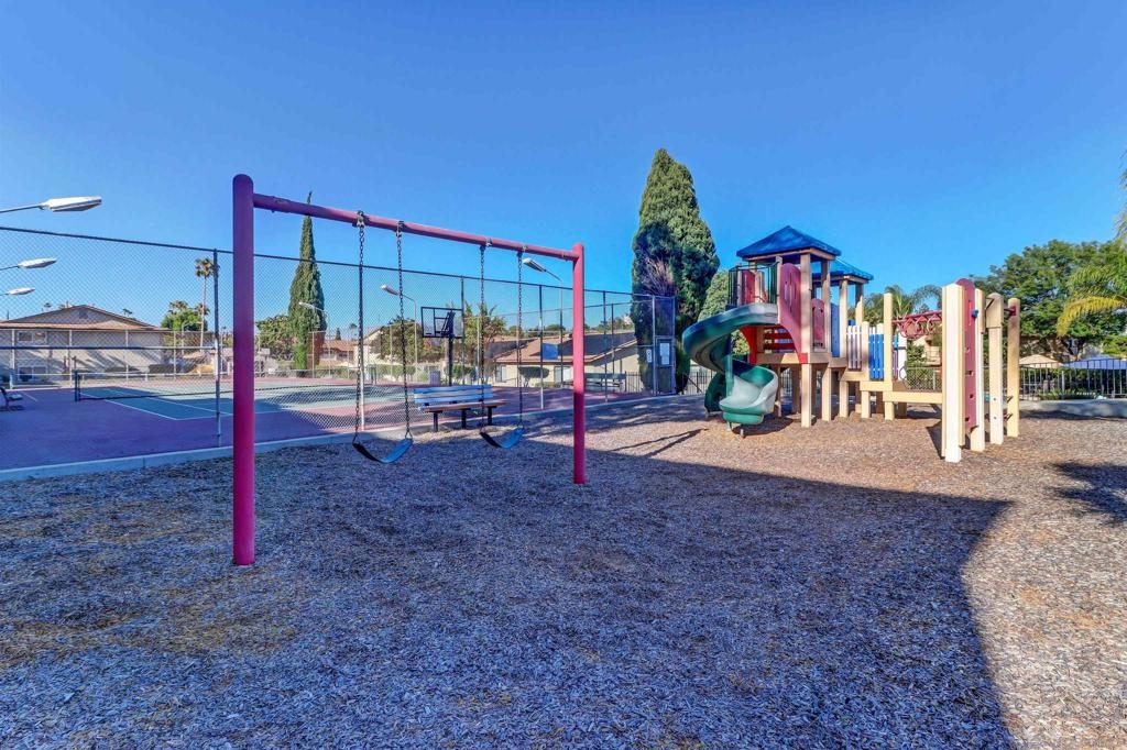 Stunning private corner unit townhome with an abundance of natural sunlight. Located within the Lake Murray community. A few of the home’s many features include: Downstairs laminate flooring, secluded private patio area with vinyl fencing, adjacent side green belt which is perfect for kids and dogs, recessed living room lighting, in unit side-by-side laundry, glass veneered white cabinets, breakfast bar, mini fridge, Stainless steel kitchen hardware, oversized master bedroom, downstairs half bathroom, Spanish style tiling in vanity with above-mount sinks, vinyl windows and sliders, private one car garage with an adjacent additional side parking space, and an open concept downstairs layout. Additional neighborhood amenities include: Two playgrounds, community pool and spa, rec room, tennis court, and grassy areas. Located within close proximity to shopping, Mission Trails Regional Park, and Lake Murray while being twenty to thirty minutes from local San Diego area attractions.