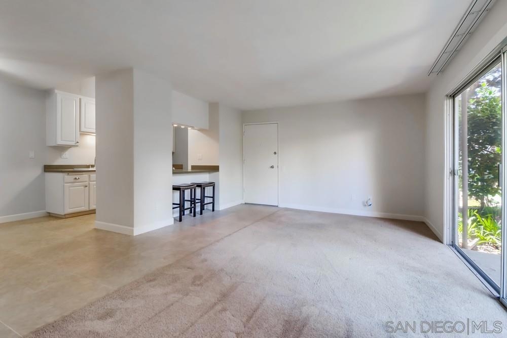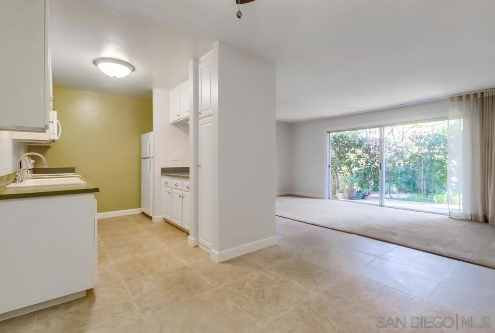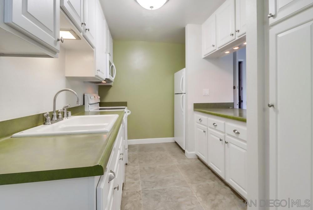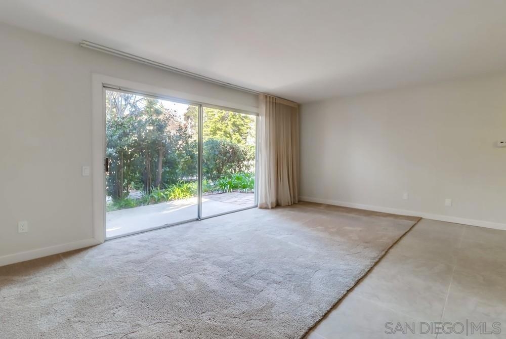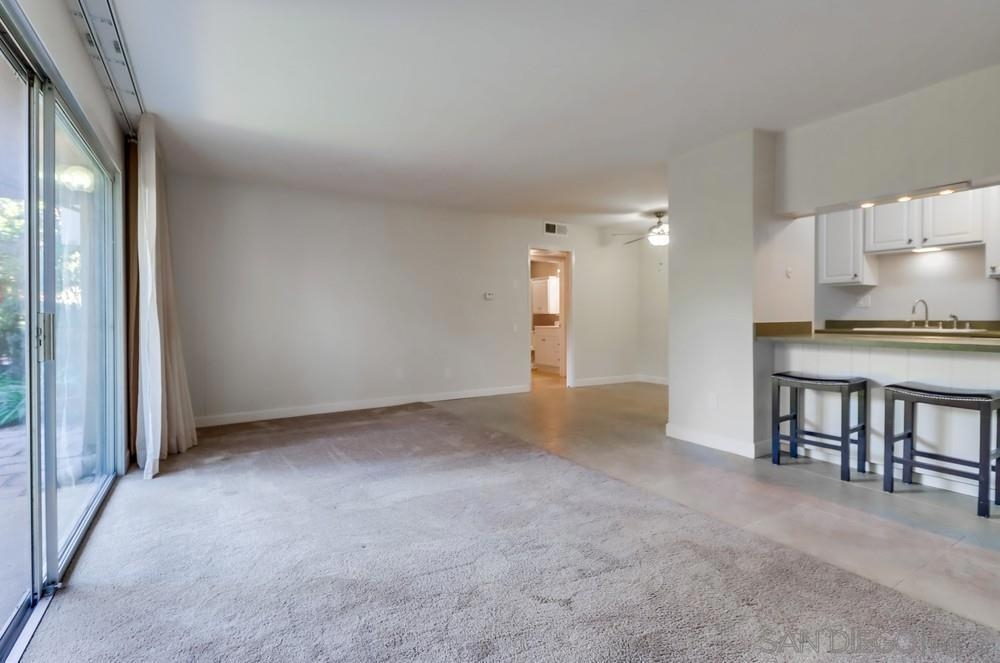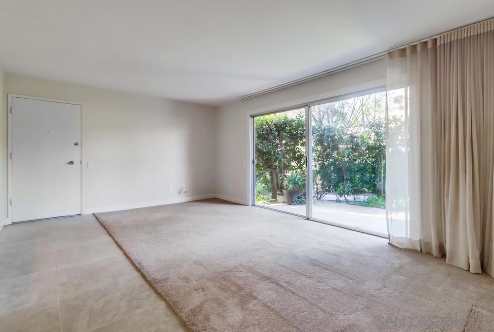 This ground floor, corner unit has serene parklike views. Sit on the oversized terrace listening to the sounds of the water fountains. Updated kitchen cabinets, recent remodeled bath, large sliding doors in living room and bedroom leading to the spacious patio. Very efficient floor-plan with large living, separate dining area and open kitchen. Complex has 5 pools, 4 spas, fitness center, tennis, basketball courts and laundry room. The parking space is close to front door making this single level condo a breeze to live in.