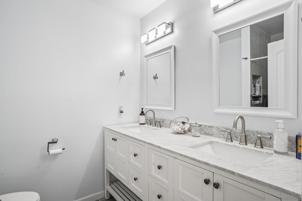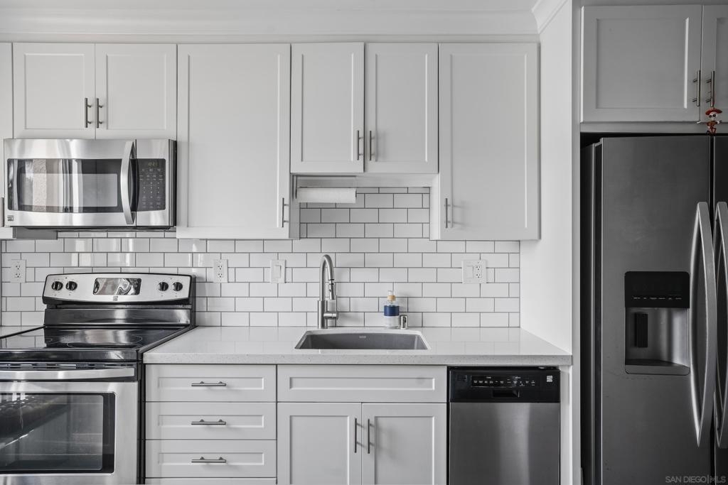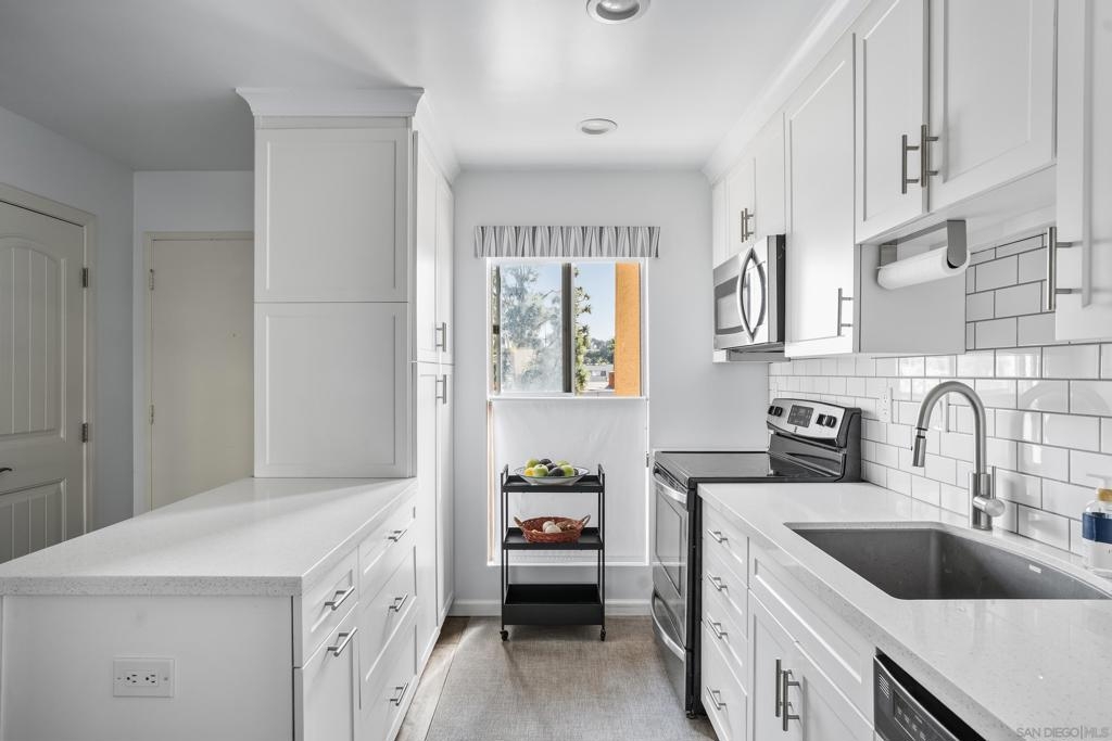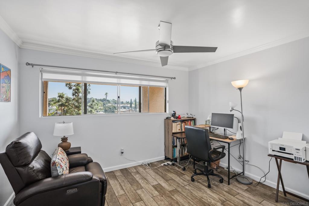 Prime location! Welcome to Lake Park, a serene resort style community just steps from Lake Murray. This fully remodeled, meticulously maintained home has been thoughtfully upgraded with over $100K in improvements, blending modern comfort with timeless style. Step inside to discover an open layout, wide-plank wood-like tile flooring, newly painted, and a beautifully tiled fireplace that anchors the living space. The kitchen and all bathrooms have been recently renovated with updated fixtures, sleek finishes, and matching stainless steel appliances. Additional upgrades include a new HVAC system, upgraded electrical panel, recessed lighting throughout, and crown molding. Even the space under the stairs has been enclosed to create added storage. Enjoy tranquil pond views from your private balcony (newly rebuilt) and primary bedroom, and mountain views from the second bedroom offering a peaceful retreat. Lake Park is a quiet, pet-friendly community known for its resort-style amenities: five pools, a gym, spa, sauna, tennis and pickleball courts, ping pong, billiards, walking trails, and even a car wash station. Extra parking for a second car or RV is available to rent. Stroll the community paths that wind around scenic ponds and lead directly to Lake Murray, where you can enjoy walking, biking, fishing, boating, or lakeside picnics. Just minutes to Cowles Mountain, top-rated schools, restaurants, shopping, and a quick drive to both the coast and the mountains - this location offers the best of San Diego living!