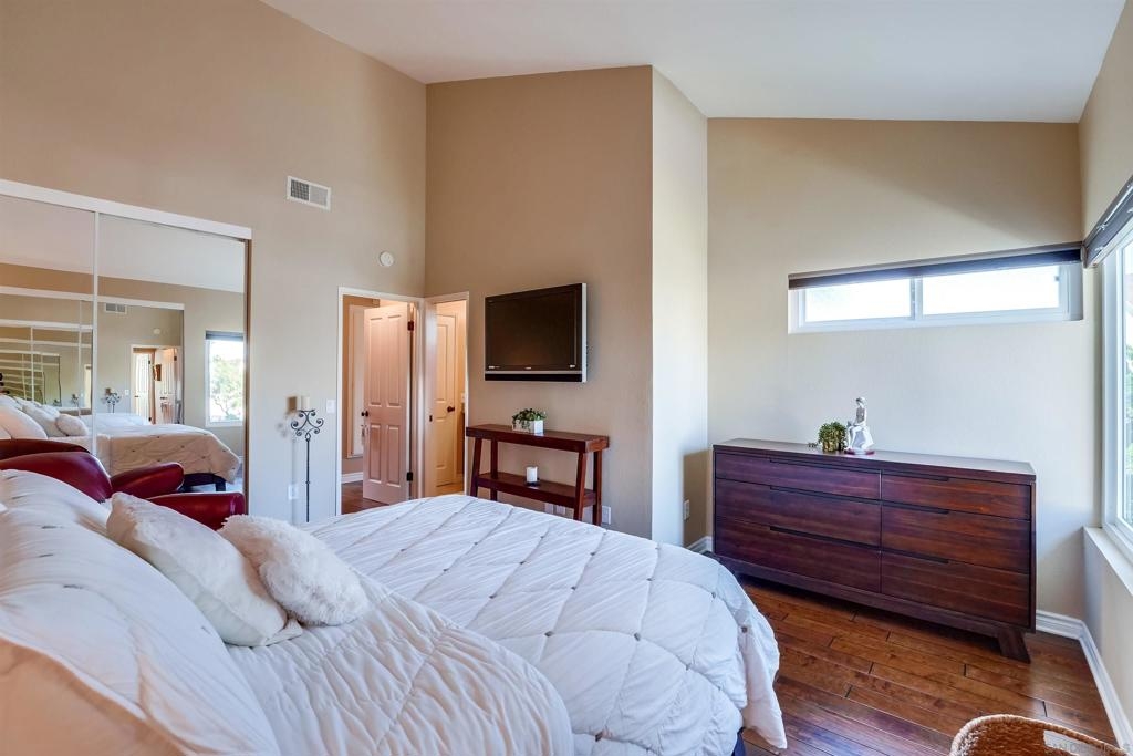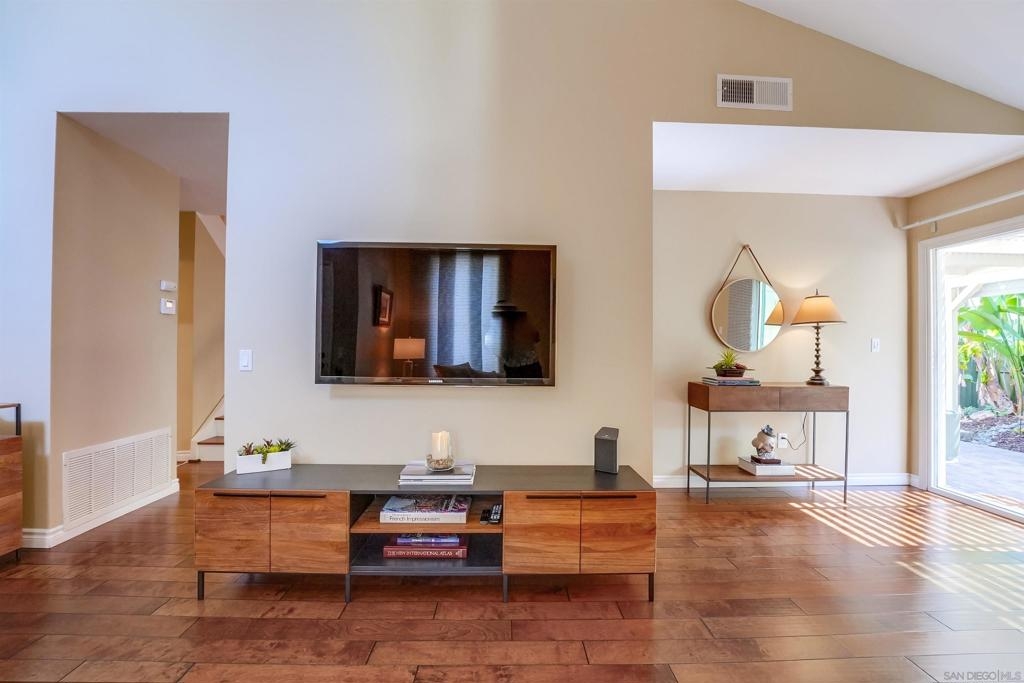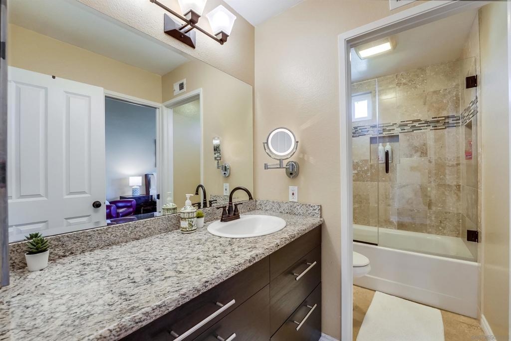 This is it! A Top to Bottom FULLY upgraded townhome w/a stunning patio! Looks like a model home. MINT. Just unpack, move-in. End unit, w/plenty of light. Cathedral ceilings. 1 B/R +1 full BA downstairs. Large MSTR B/R has huge dual closets. Private patio is great for tots + pets, has UV protection + motorized shade. Lush patio landscaping offers the privacy you crave. Plus, pull-down steps to an immense, walkable attic for all your storage needs. Home is in a PUD! Great location, walk/bike to Lake Murray! = See SUPPLEMENT BELOW for Upgrade list + PUD ownership benefits. NEW/Newer upgrades include all new kitchen cabinetry w/soft-touch drawers, sink, faucet, QUARTZ countertops+ backsplash w/mood lighting, Samsung S/S APPL w/washer/dryer, dual-pane windows + patio slider, laminate flooring (no yucky carpeting), 2 Italian travertine tiled bathrooms w/shower niches, 2 bath cabinets, porcelain tub, 2 frameless glass shower enclosures, 2 towel warmers, retractable vanity mirrors w/lighting, canned lighting, 2 EXH fans, ALL mirrored closets, CUSTOM DESIGNED $CALIFORNIA CLOSETS $ IN ALL 4 BEDROOMS, West Elm light fixture, ALL water fixtures, coffee bar, light dimmers, ALL baseboards, painted paneled interior doors (ALL), linen cab w/granite, ALL window shades, GBG disposal, Ring, polyaspartic garage flooring, GAR door opener w/keyless pad, CENTRAL A/C, HVAC, tiled patio, patio door. NEW ROOF by HOA! The wood patio cover installed WITH PERMITS. The exterior PAT door exits to the complex.*** What's better than condo ownership? A PUD! A home in a Planned Unit Development means you actually own the lot under the unit, and you'll get a better rate when purchasing since pricing is the same as a single-family home. Your lender won't have to request condo approval, either. *** Near everything + it's freeway close! Complex Features: ,,, Equipment: Dryer,Garage Door Opener, Range/Oven, Washer Sewer: Sewer Connected Topography: LL