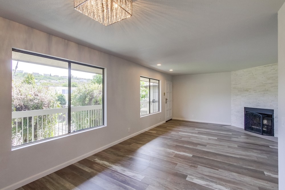 New remodeled! All you need in La Mesa! Upgraded kitchen with new stainless steel appliances, quartz countertops with back splash & pantry. Laminate wood flooring throughout & recessed lighting . Upgraded bathrooms from top to bottom. Nice size dining room area & roomy living room with fireplace. Large master bedroom & master bath, plus two closets. New fans in each bedroom. Home has central heat & AC. Full size washer/dryer area in the unit. Easy access to freeways, SDSU, schools and more! Second floor unit. Spacious feel, fully remodeled. Smaller quite complex located in a residential area in La Mesa. Close to San Diego State University & easy freeway access.. Neighborhoods: La Mesa Complex Features: ,, Equipment: Range/Oven Other Fees: 0 Sewer: Sewer Connected Topography: LL