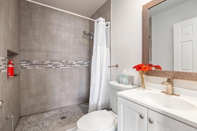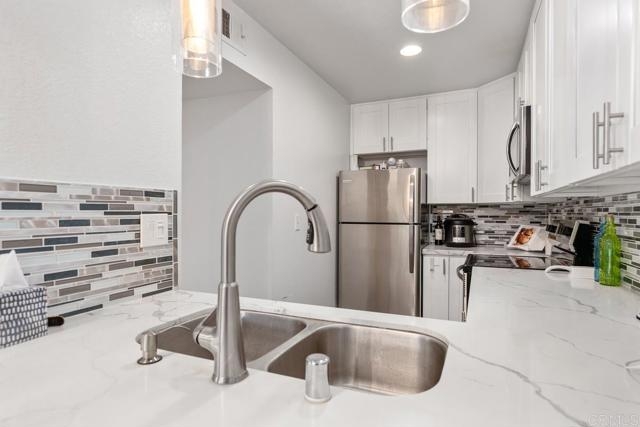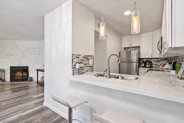 Turnkey Completely Remodeled Executive Class Condo, In a Great Convenient Location In La Mesa. 2 Beds 2 baths with a private master bathroom. This condo includes; White Shaker Cabinets, Glass Mosaic Backsplashes and Showers, Luxury Vinyl Flooring, Quartz Countertops, Stainless Sinks and Appliances, has both Bath Tub and Shower. The wood burning fireplace is lined with beautiful quartzite stacked stone. You will also beat the heat with central AC! Neighborhood and sunset views from bedrooms in a complex with a beautiful gated courtyard, with community gas grills! Includes 2 parking spots. Walking distance to La Mesa Arts Academy, La Mesa Dale Elementary, and Helix High School. Convenient access to nearby La Mesa Village, and Vons Supermarket/ Pharmacy. HOA is reasonable at $325 a month, includes water and trash! Condo is also VA loan approved without conditions. You can't beat the price, convenience, finish and location of this turnkey, up to date condominium!