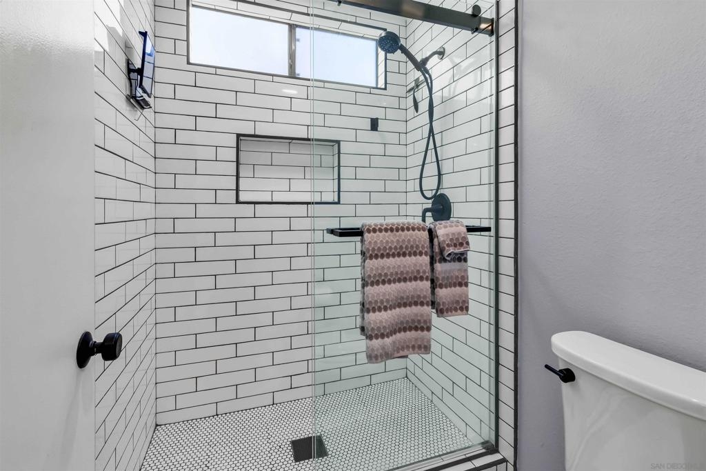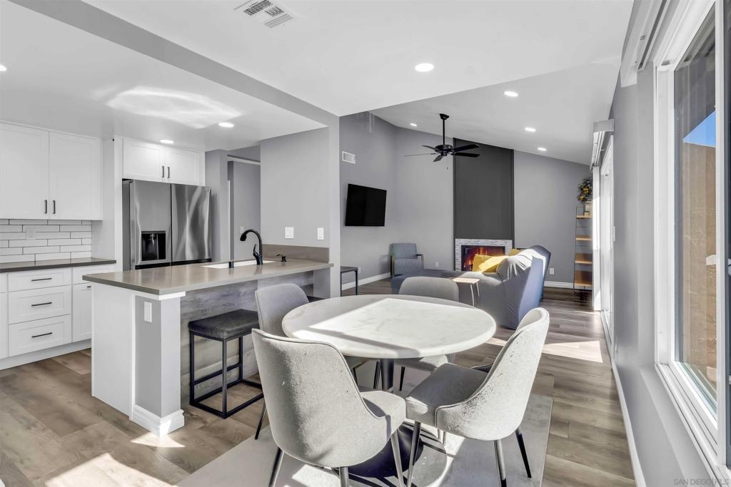 This VA approved total turn-key, top-floor end unit blends modern comfort with a bright, open layout. The spacious living room features a vaulted ceiling & a cozy wood-burning fireplace—perfect for relaxing or entertaining. The completely remodeled kitchen offers shaker-style cabinetry, quartz countertops, ample prep space, newer appliances & opens seamlessly to the dining area for easy hosting. Luxury vinyl plank flooring runs throughout the home, complemented by central A/C for year-round comfort. Both bathrooms showcase stylish subway-tile showers & the large primary bedroom easily accommodates a king-size bed with additional furniture. The balcony includes a convenient laundry closet with side-by-side washer & dryer. Two designated parking spaces—a carport with small storage closet plus an additional uncovered space—both located close to the unit. Parkway Manor offers a well-maintained community with a sparkling pool and spa, lush landscaping, & reasonable HOA fees that include Cox cable TV. The HOA is well-funded for long-term peace of mind. Conveniently located near Lake Murray, shopping, dining, Grossmont Hospital, and major freeways, this home delivers both comfort & accessibility.