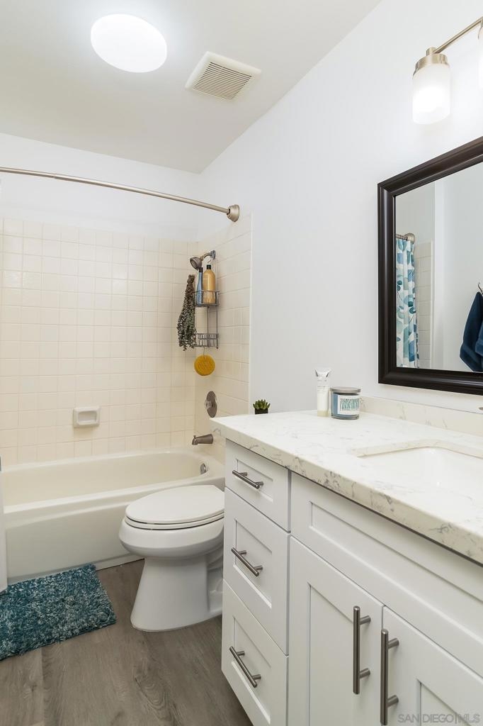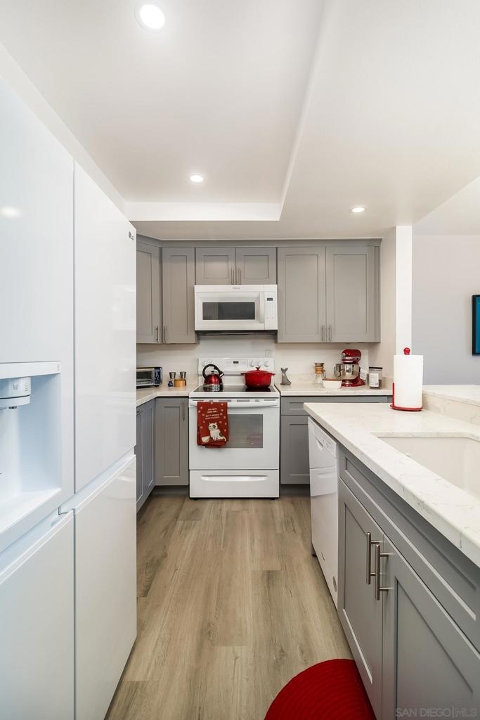 Charming Condo with Modern Amenities and Prime Location. Welcome to 7780 Parkway Dr #202, La Mesa! This beautifully remodeled 2-bedroom, 2-bath condo is nestled in a quiet complex that offers both convenience and comfort. Step inside to discover a spacious primary bedroom flooded with natural light, a cozy wood fireplace, and a remodeled kitchen featuring modern finishes and ample storage. The elegant vinyl plank flooring adds a contemporary touch. Enjoy the convenience of in-unit laundry with the washer and dryer included, and take full advantage of central air conditioning to keep cool during warm California days. The complex boasts a refreshing community pool and offers two designated parking spots for your ease. With its prime location near shopping, dining, and entertainment, this home is an ideal opportunity for those seeking a tranquil yet vibrant lifestyle. Don't miss the chance to make this charming condo your new home!