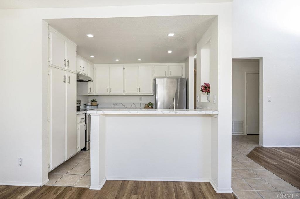 This recently refreshed condo in the heart of La Mesa is ready for its new owner! 2 bed, 2 bath upstairs corner unit has gorgeous new white quartz countertops, new laminate flooring, new light fixtures and fresh paint throughout. The light and bright kitchen with breakfast bar features stainless steel appliances and a deep farmhouse sink. New dual-pane windows and slider along with upgraded HVAC keep energy bills low! Living room has a beautiful wood burning fireplace with slate surround, and the balcony off the living room has a laundry closet (w/d included), extra storage, and views to Mt Helix. You'll find plenty more storage in the oversized closets in both bedrooms and the hallway. FHA and VA approved complex. Can you believe HOA includes water, hot water, trash, cable TV w/HBO & Showtime, pool, and spa! 2 assigned parking spots, one covered with locked storage. Close to Lake Murray, freeways, dining, shopping, award-winning Maryland Ave Elementary!