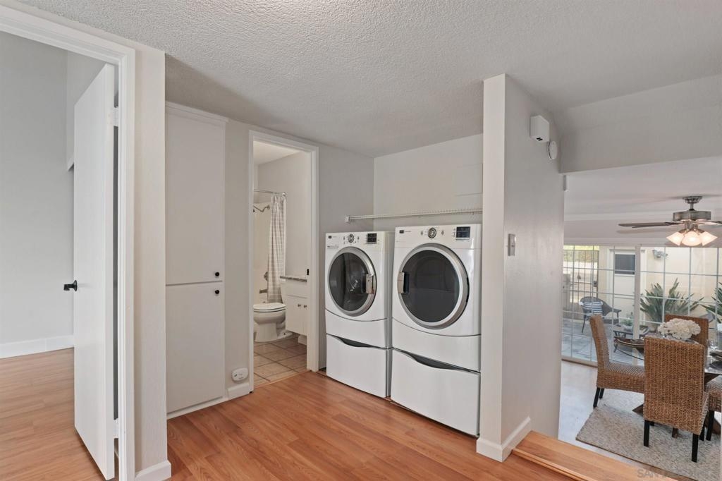 Beautifully updated 3 bed, 2.5 bath split level townhome in La Mesa close to it all! Enter into a cozy light-filled living room with high ceilings, slider to the front yard, shiplap accents, a reading nook, & a vintage cone fireplace! The main floor boasts an open dining area & kitchen with large sliders out to your private spacious patio perfect for entertaining & outdoor living! The kitchen has granite counters, crisp white cabinets, tile flooring, barstool seating, pendant lighting, & SS appliances! Other highlights include vaulted ceilings, luxury vinyl plank flooring, full size w/d conveniently located on the main floor, a balcony off one of the bedrooms, and the top floor reserved for the primary bedroom with a walk-in closet, & large ensuite! 1 car garage plus 1 assigned parking space. Community pool, spa, & rec room! Minutes to tons of shopping centers, restaurants, parks, Lake Murray, schools, Grossmont Center, Sharp, & Hwy 8! Equipment: Dryer, Washer Other Fees: 0 Sewer: Sewer Connected Topography: LL