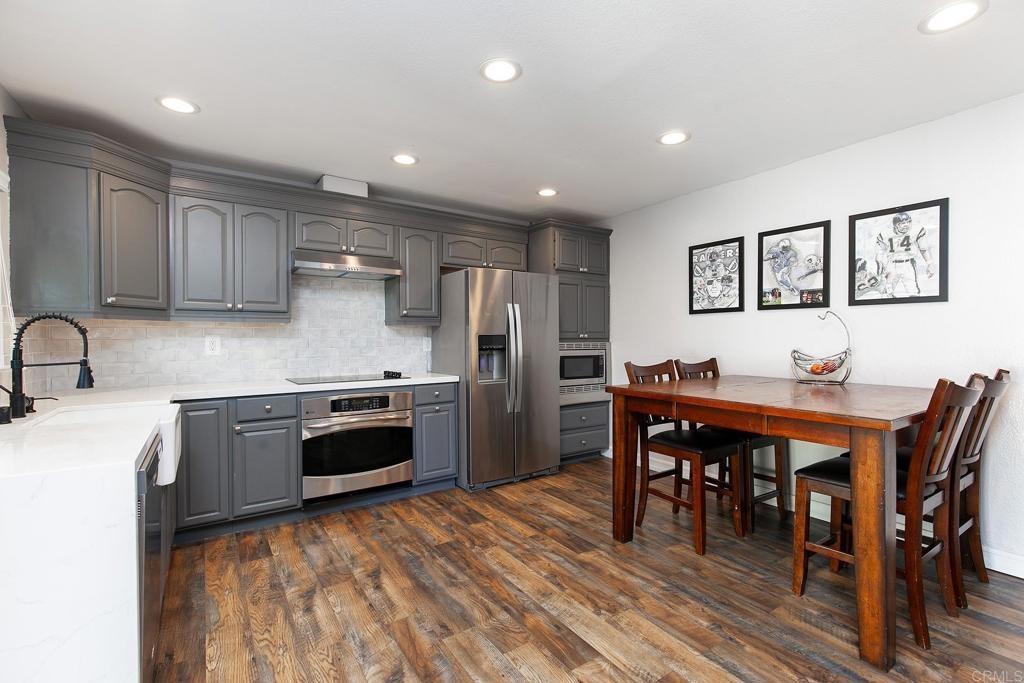 3 BEDROOM, 2.5 BATH TOWNHOME IN LA MESA WITH 1610 SQ FT AND AMAZING VIEWS!! THE HOME FEATURES A BEAUTIFULLY REMODELED EAT-IN KITCHEN WITH STAINLESS APPLIANCES, QUARTZ COUNTERS AND PANTRY, RECESSED LIGHTING, WOOD LAMINATE FLOORING, FORCED A/C AND HEAT, HUGE LIVING ROOM WITH VAULTED CEILINGS AND FIREPLACE ALONG WITH DOUBLE SLIDER DOORS THAT LEAD TO A VIEW DECK, UPDATED BATHROOMS, SPACIOUS PRIMARY BEDROOM, INSIDE LAUNDRY, LOTS OF NATURAL LIGHT, END UNIT WITH MAXIMUM PRIVACY, LARGE PRIVATE PATIO, 1 CAR GARAGE, 1 UNCOVERED CARPORT AND AN ADDITIONAL PERMITTED PARKING SPACE. THE BEST LOCATION IN THE COMPLEX. VA AND FHA APPROVED.