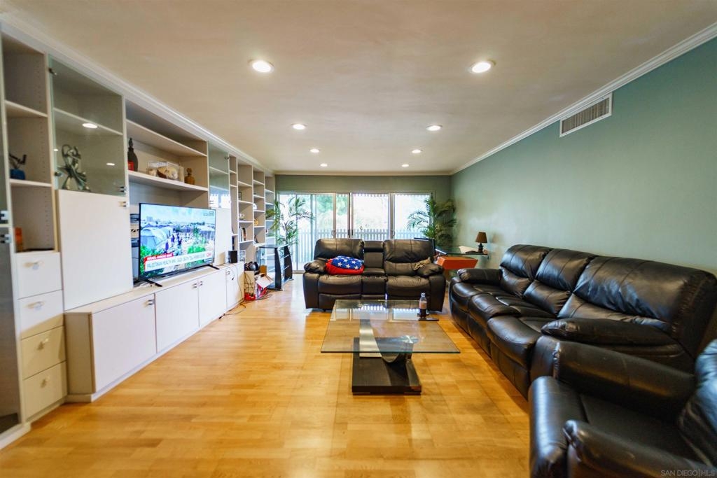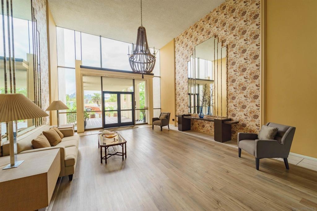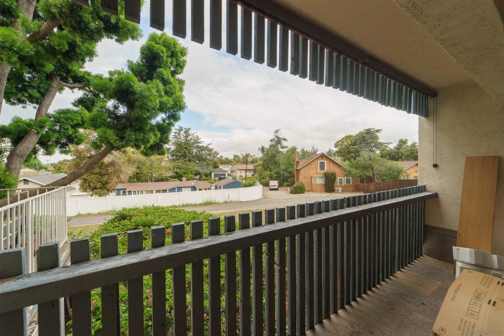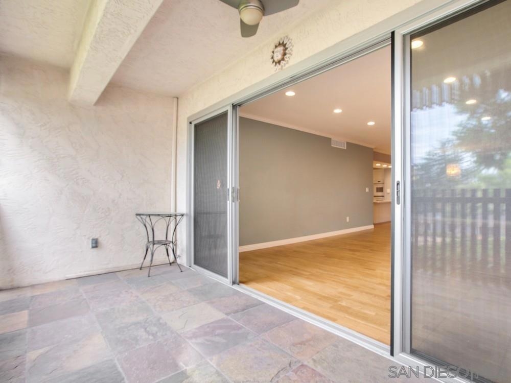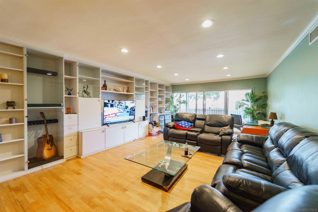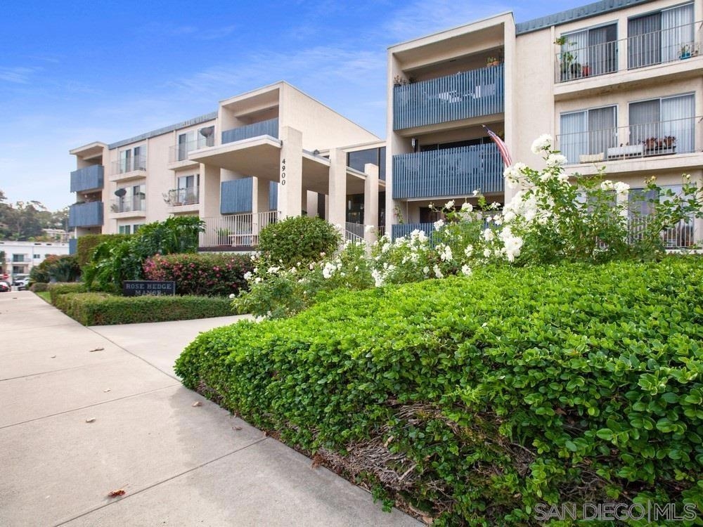 This unique first story condominium is located in the highly sought-after Rose Hedge Manor complex. With only 1 neighbor and located conveniently near the entry to the complex, the unit features a large, functional floorplan. The living room offers a built-in entertainment system with an abundance of shelving and storage. The living room connects to a private terrace, comes equipped with shades and an outdoor ceiling fan. The condo features wood floors throughout. dual master bedrooms, ample natural sunlight. central AC/ heating system recently installed. The location is highly desirable, the school systems are superior, and historic La Mesa Village is walking distance from the property!