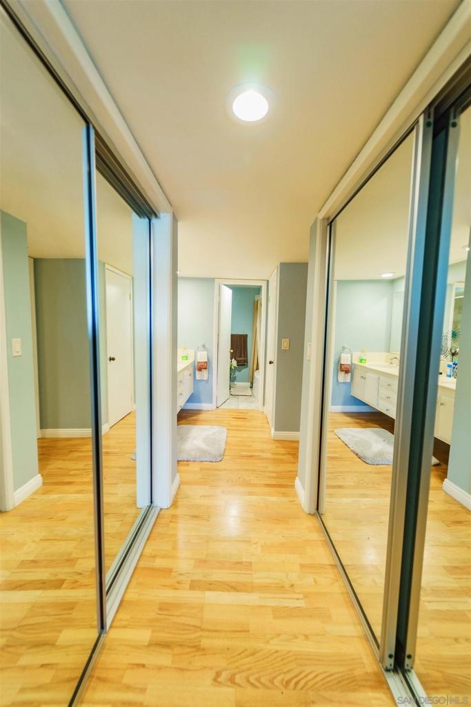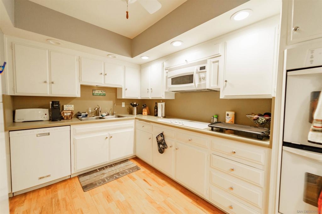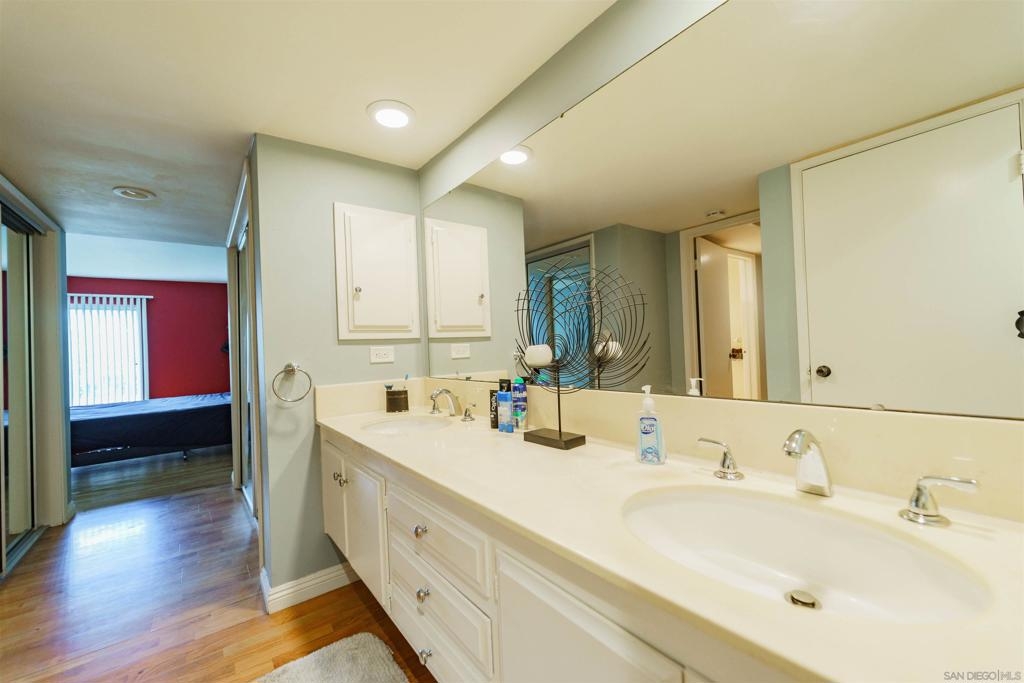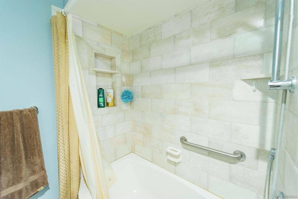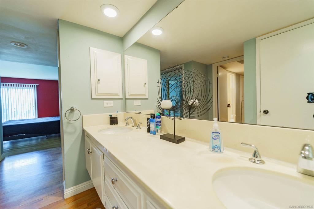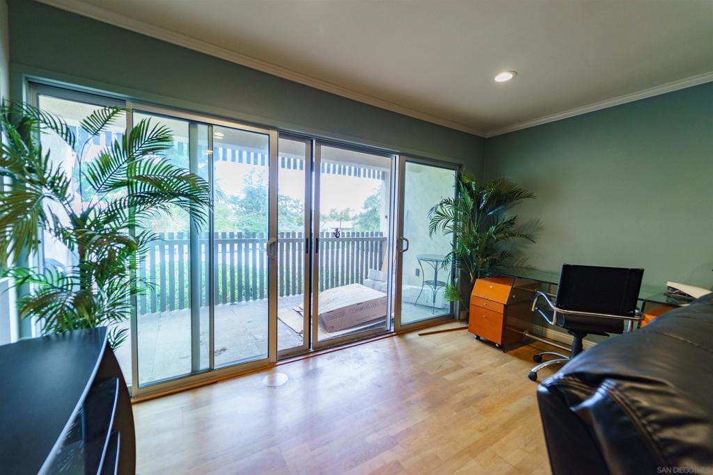 This unique first story condominium is located in the highly sought-after Rose Hedge Manor complex. With only 1 neighbor and located conveniently near the entry to the complex, the unit features a large, functional floorplan. The living room offers a built-in entertainment system with an abundance of shelving and storage. The living room connects to a private terrace, comes equipped with shades and an outdoor ceiling fan. The condo features wood floors throughout. dual master bedrooms, ample natural sunlight. central AC/ heating system recently installed. The location is highly desirable, the school systems are superior, and historic La Mesa Village is walking distance from the property!