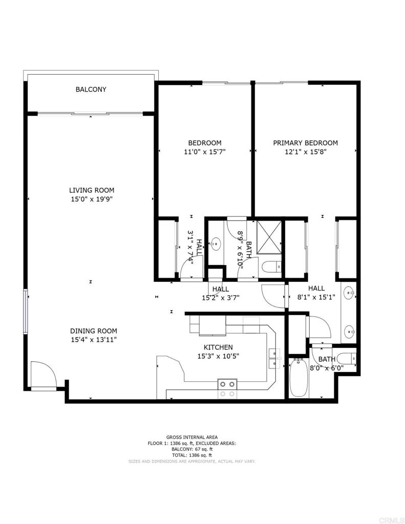 2 beds, 2 baths, 1,330 sq.ft.