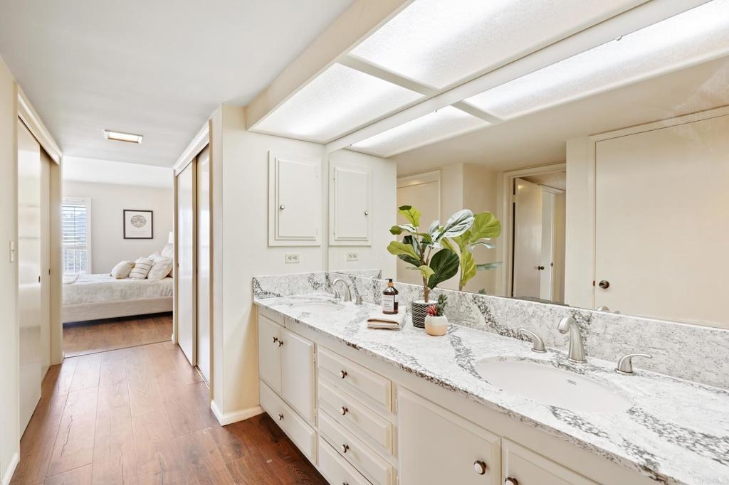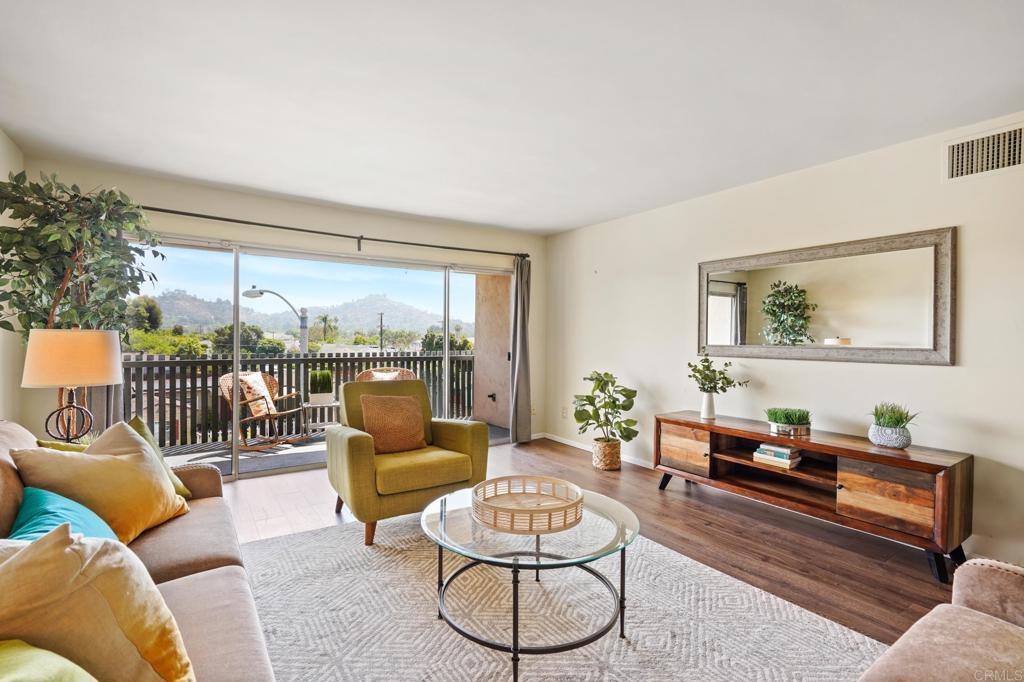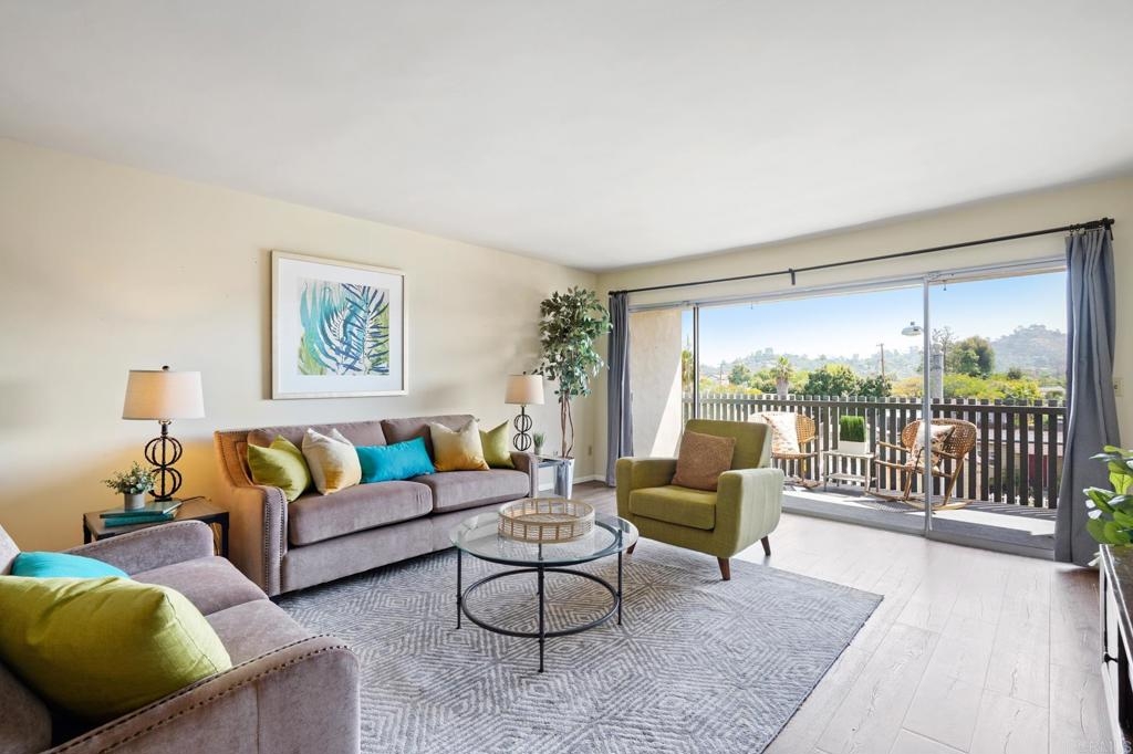 Live the La Mesa life!  This home is very likely the absolute best value on the market currently. Come visit and be impressed by this beautifully upgraded top floor unit with panoramic hilltop views from all rooms. 40K in recent upgrades including designer stone work in bathrooms and kitchen, new flooring, new appliances, and paint throughout. Spacious, open concept kitchen, dining, and living areas lead out to a balcony overlooking the hills of La Mesa.  Enjoy a short walk to the downtown village of La Mesa and its farmers markets, restaurants, boutiques, and cafes, as well as the beautiful community gem of MacArthur Park. La Mesa is the perfect mix of traditional charm and up and coming chic. Home features 2 large bedrooms, one with en suite bathroom, that both open up to petite balconies. Floor to ceiling sliding doors in all rooms create a fresh and bright vibe throughout the home. Building includes secure gated parking, secure entrance, and rooftop deck. Call for a viewing appointment, this one wont last!