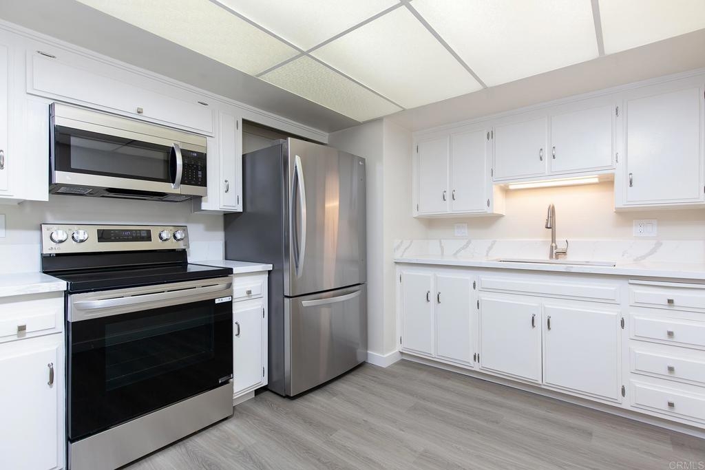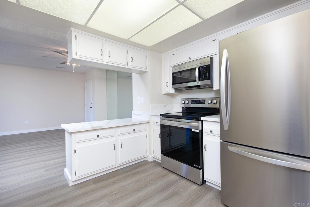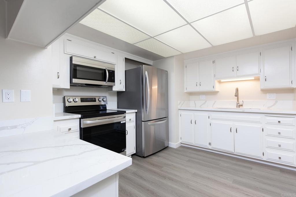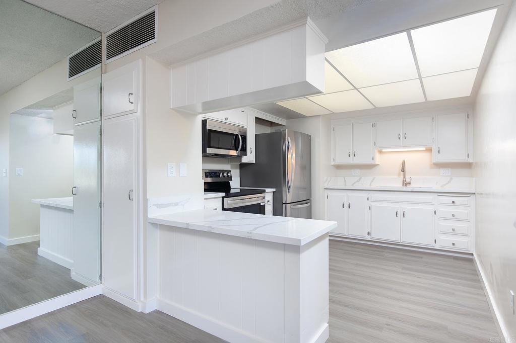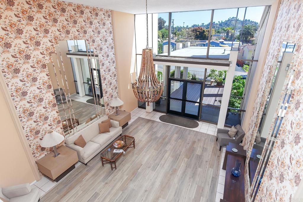LOCATION, LOCATION, LOCATION....This lovely condo is walking distant to the charming Iconic village of downtown La Mesa. You can walk to the Village and find restaurants, banking, Clothing stores and numerous other shops. This END UNIT has been fully upgraded, All new flooring throughout, new kitchen cabinets, countertops, all new LG appliances. Bath also total upgraded, shower enclosure, shower doors, cabinets, countertops, flooring. Living room has a huge window with tons of natural light and a view. Bedroom all new flooring with a sliding door to the deck outside. The community boasts a Grand Foyer, a Library/Sitting room, shaded Patio area, Elevator, , Rooftop deck for relaxing or entertaining, laundry room with multiple machines which is just down the hall. Underground private gated parking, space 316, easy access to Grossmont Center for shopping, All you need to do is move yourself in.