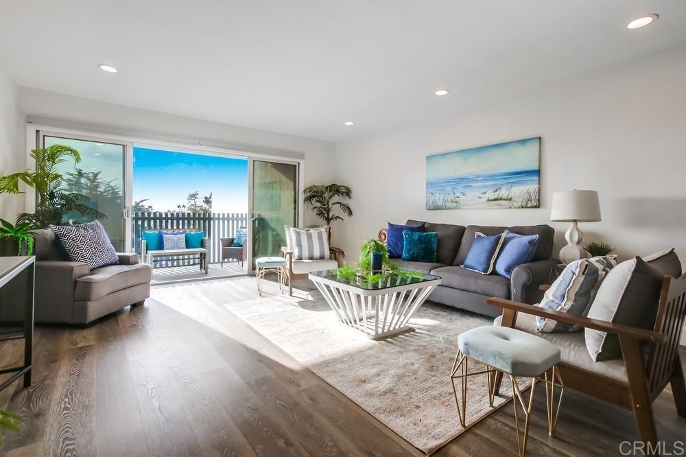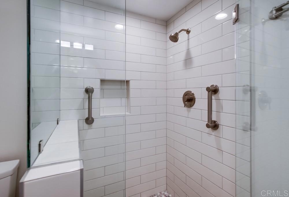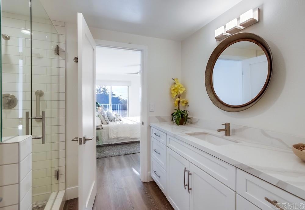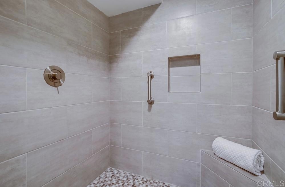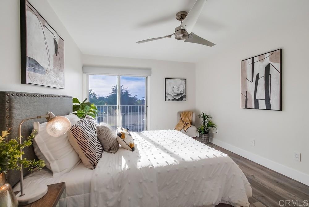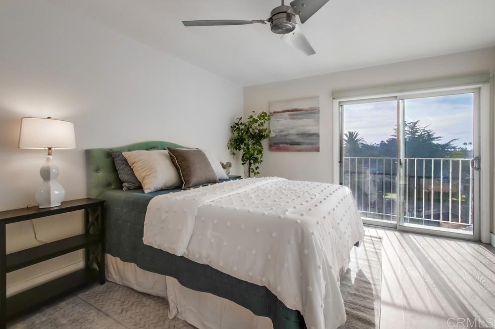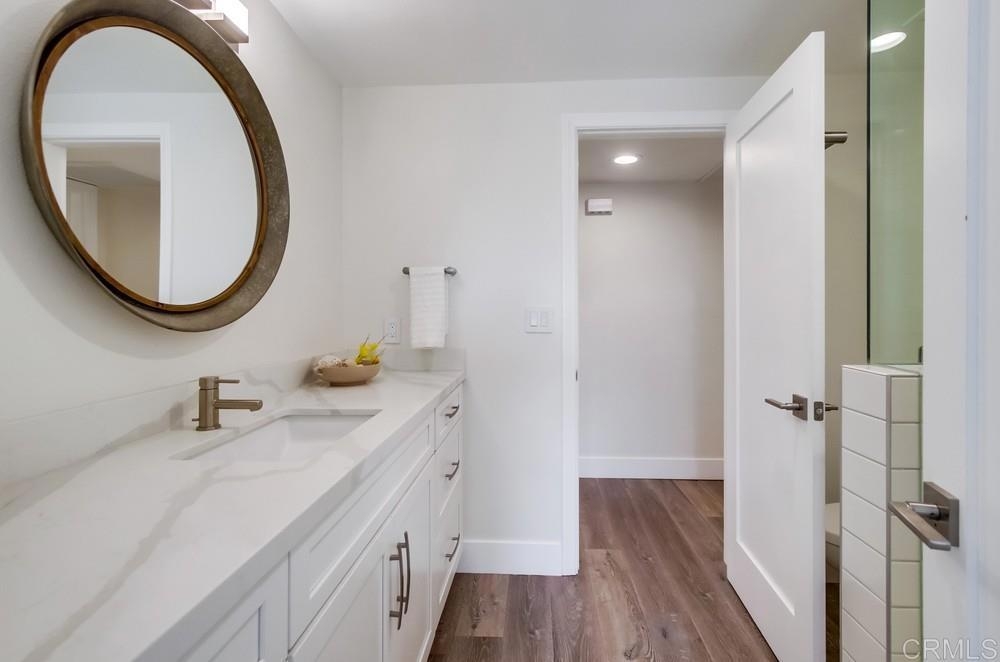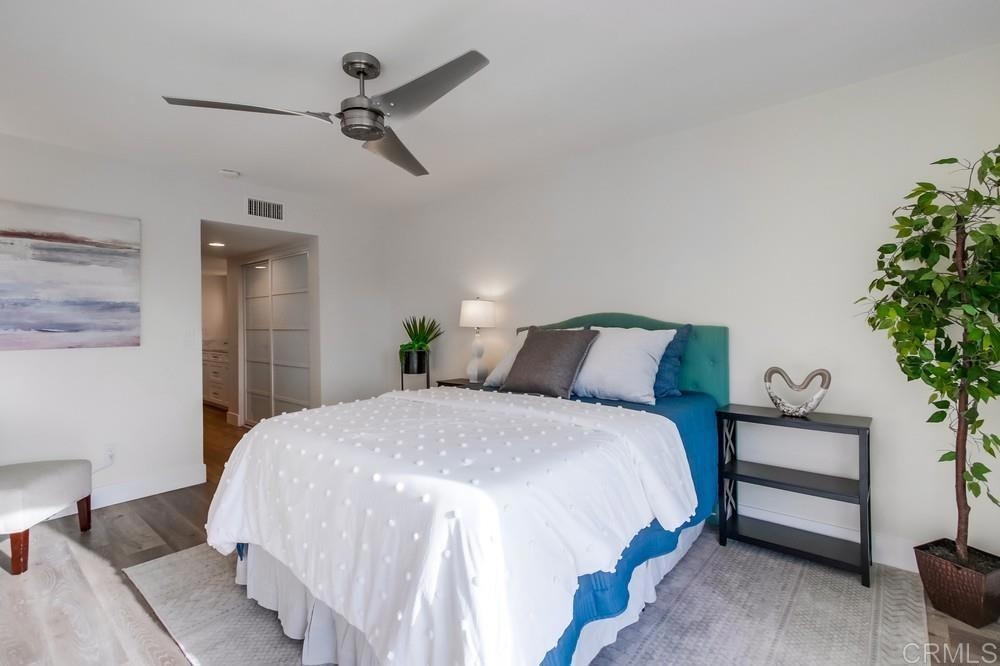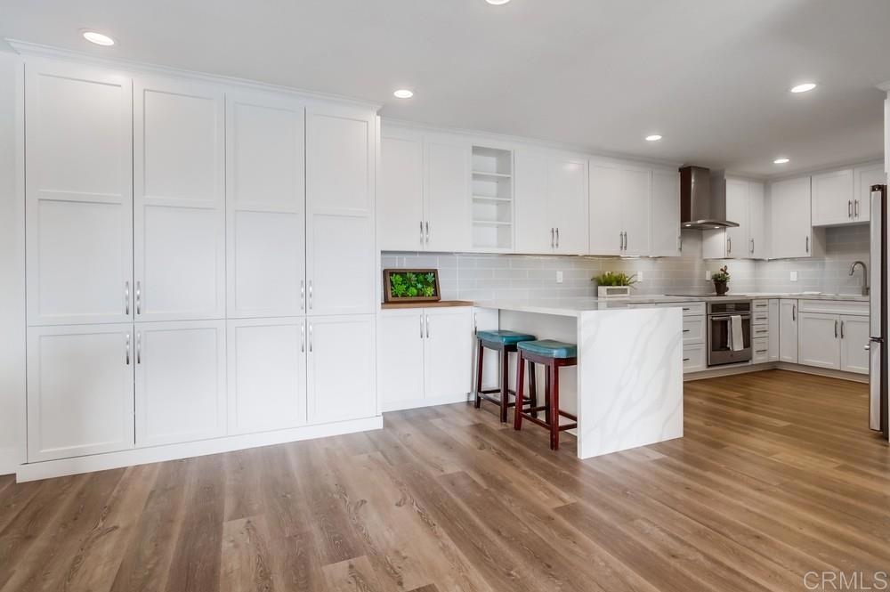 Fabulous 2-Bedroom, 2-Bath Condo Near The Village of La Mesa! This spacious, light-filled top-floor unit features an open floor plan with upgrades throughout. The entryway offers newer custom-built storage cabinets that flow seamlessly into the modern kitchen, complete with stainless steel appliances and soft-close drawers. Step out to the private balcony off the living area and soak in stunning sunset views. Both bedrooms have sliding glass doors that open to a second balcony. Beautiful closet doors in each bedroom, and the primary bedroom has custom shelving and drawers for added storage. Enjoy the convenience of in-unit full-size stacked laundry. Adjustable recessed lighting adds a modern touch, while luxury vinyl plank flooring extends throughout the home. The updated bathrooms feature stylish walk-in showers. Additional highlights include two parking spaces and a storage area in the secure underground garage. The community offers a small library, shaded patio, extra laundry room, elevator access to all floors, and a rooftop sun deck perfect for dining and entertaining.