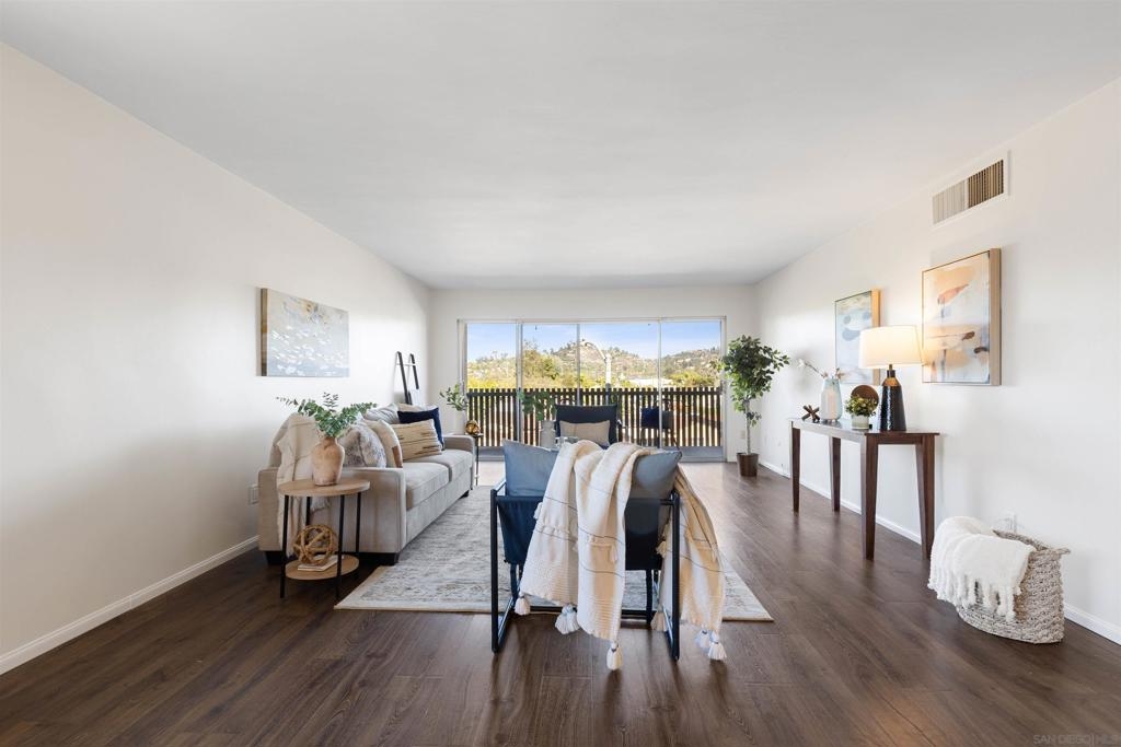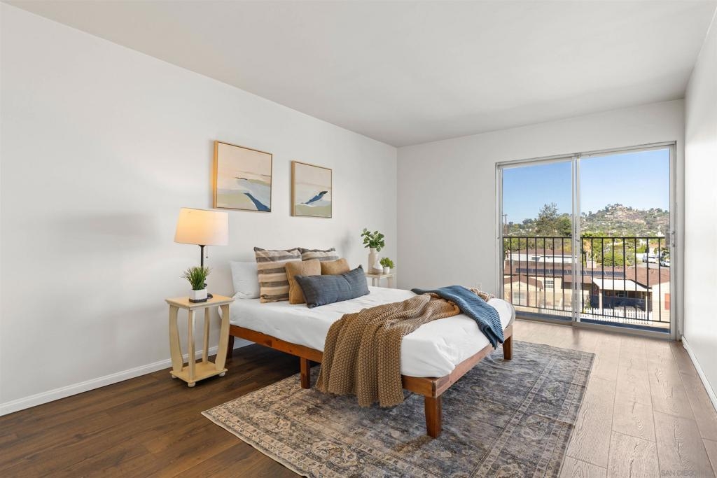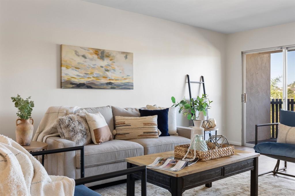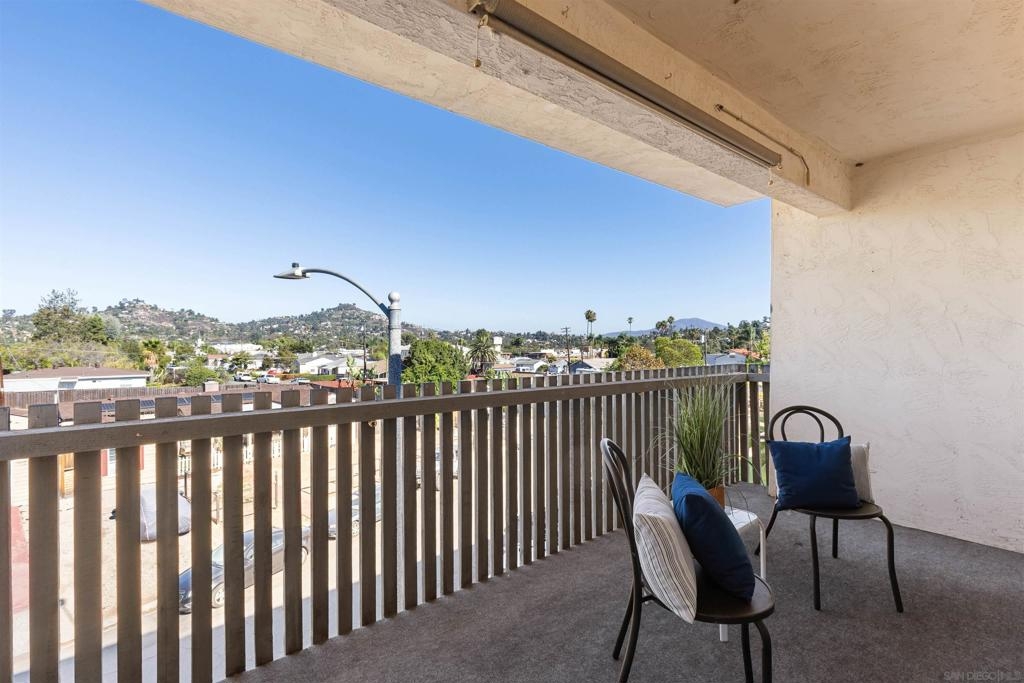 ASSUMABLE LOAN! Top-floor, end unit La Mesa gem with panoramic hilltop views from every room and unbeatable location just steps from La Mesa Village, MacArthur Park, farmers markets, restaurants, boutiques, and two trolley stops. This light-filled, open-concept unit features floor-to-ceiling sliding doors, fresh paint, recessed lighting, central A/C and heat, upgraded GFI outlets, and a spacious kitchen with stainless steel KitchenAid appliances and ample storage. Both large bedrooms (one with en suite) open to private balconies, perfect for enjoying peaceful mornings or evening breezes. Additional highlights include tandem parking for two, secure gated entry, upgraded community laundry, a rooftop deck with sweeping views, and a quiet building atmosphere. This is La Mesa living at its best—don’t miss it!
