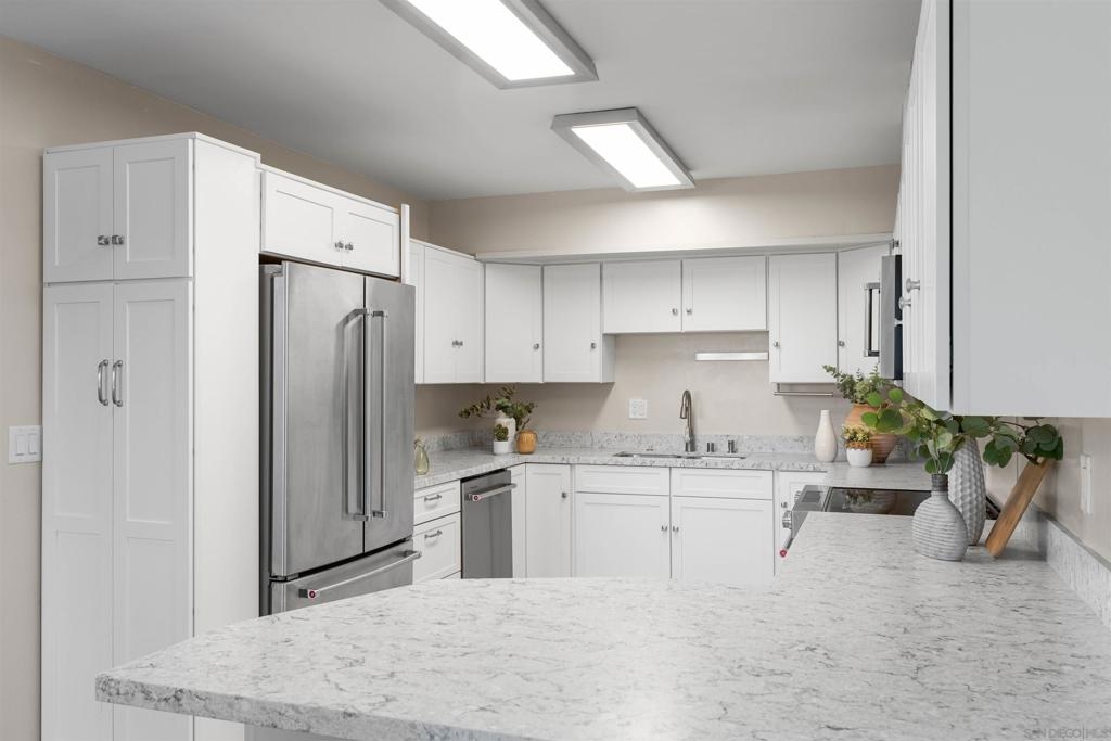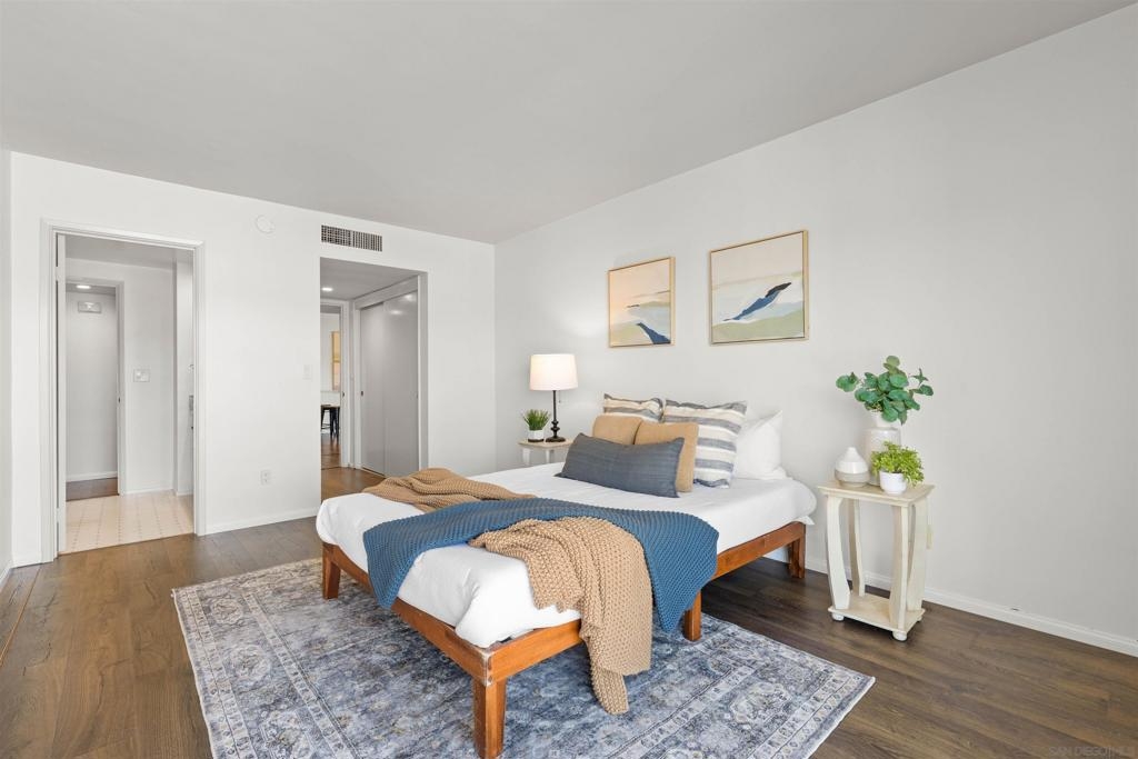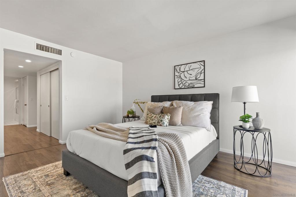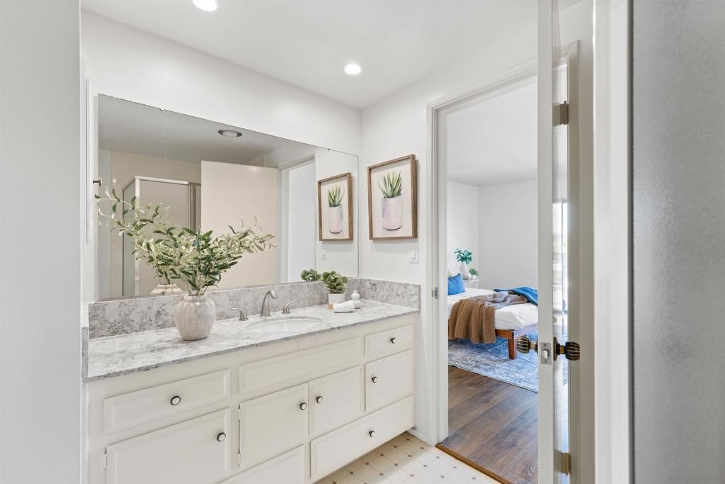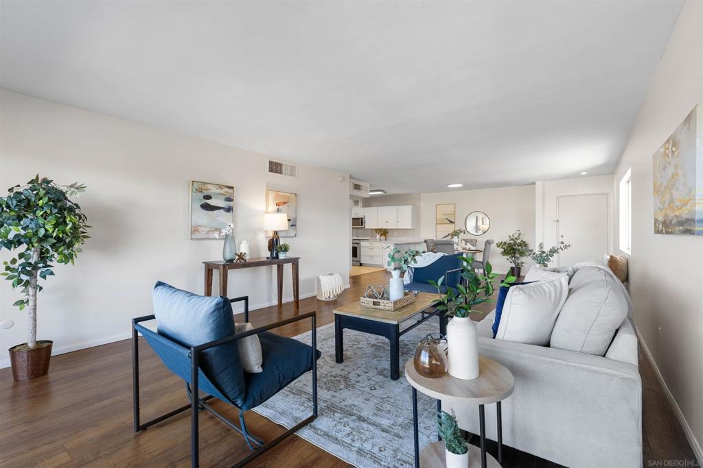 ASSUMABLE LOAN! Top-floor, end unit La Mesa gem with panoramic hilltop views from every room and unbeatable location just steps from La Mesa Village, MacArthur Park, farmers markets, restaurants, boutiques, and two trolley stops. This light-filled, open-concept unit features floor-to-ceiling sliding doors, fresh paint, recessed lighting, central A/C and heat, upgraded GFI outlets, and a spacious kitchen with stainless steel KitchenAid appliances and ample storage. Both large bedrooms (one with en suite) open to private balconies, perfect for enjoying peaceful mornings or evening breezes. Additional highlights include tandem parking for two, secure gated entry, upgraded community laundry, a rooftop deck with sweeping views, and a quiet building atmosphere. This is La Mesa living at its best—don’t miss it!