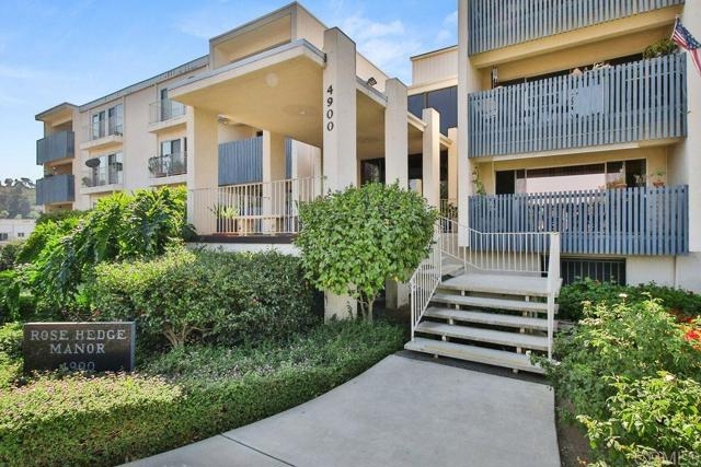 Downtown La Mesa doesn’t disappoint! This 1 Bedroom Condo is close to all of the restaurants, parks, coffee shops, shopping and events that the Village of La Mesa offers. This first floor end unit in Rose Hedge Manor has new carpeting and easy access from the back parking area. Large living area that connects to dining area and kitchen. Large bedroom has a private balcony and attached bathroom. Community features include underground parking, lobby area, laundry room, rooftop deck and a library. This condo is ready to be yours!