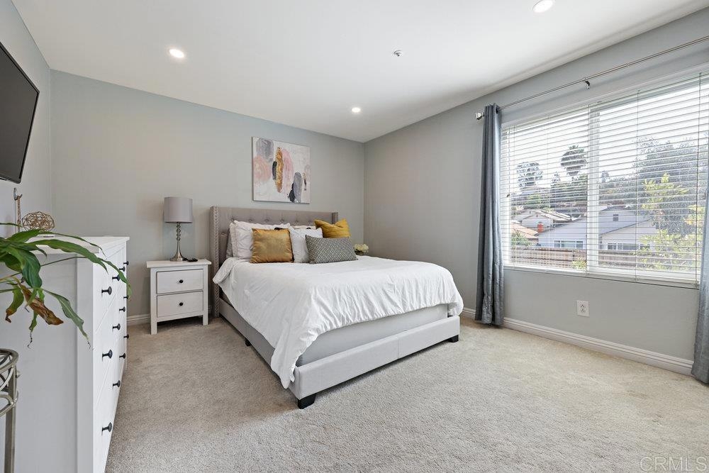 Gorgeous Remodeled 2bd/2bth Corner Unit! This beautiful condo has everything including full sized washer/dryer, air conditioning, updated recessed lighting, newly installed dual pane windows and coverings, mirrored closet doors, and new carpet. The complex has gated front door entry and garage parking. A large private storage unit (roughly 4X8) is located in the garage. Community pool/spa/bbq area, and an updated fitness center. The kitchen and guest bathroom have newer cabinetry and granite countertops with the primary bathroom completely remodeled last year! The location is ideal close to Lake Murray, Shopping, Restaurants, and the 8 Freeway! Pictures of the newly remodeled primary bathroom will be uploaded next week.