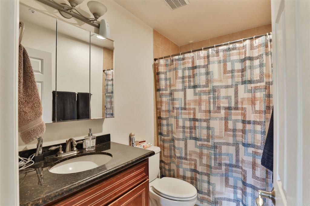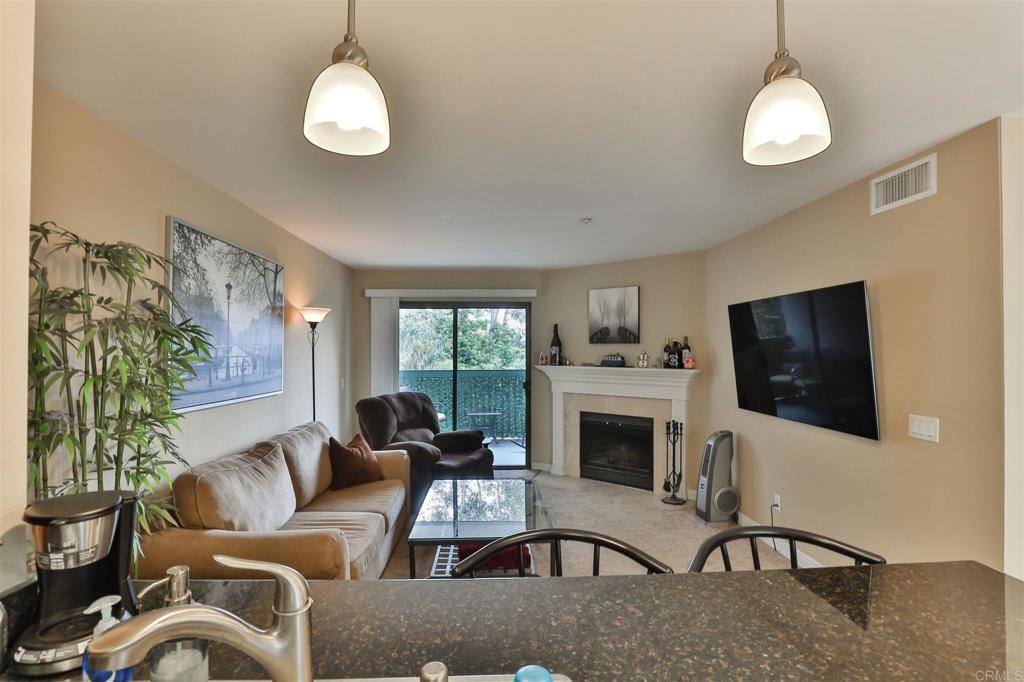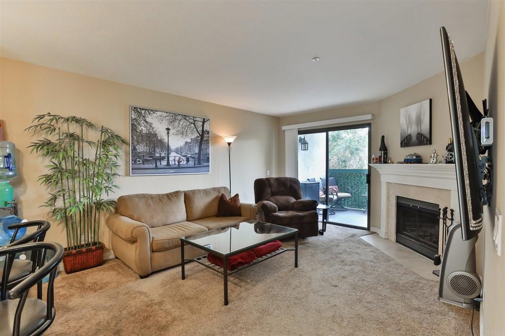 Beautiful 2 bedroom/ 2 full bath Condo, located on the second floor of a private, gated and secure complex with amenities galore! Granite counters, wood burning fireplace, large balcony, 2 assigned parking places (one in gated garage). 2 large storage areas. Washer and Dryer in unit are included. Complex amenities include, large elevator, beautiful tranquil courtyard with fountain, pool, spa, BBQ, private gym/rec room. Walk to Lake Murray, restaurants, shops and more! A must see!!