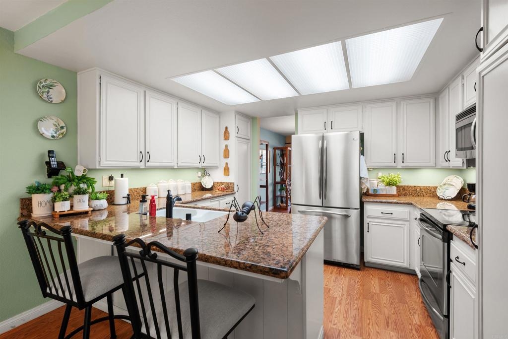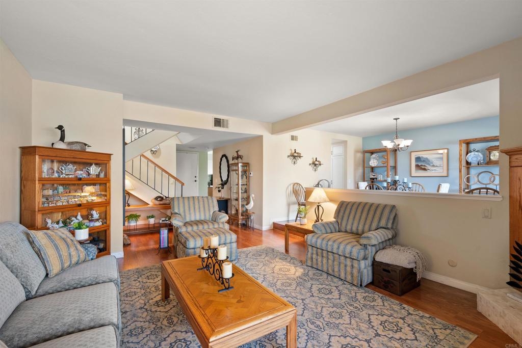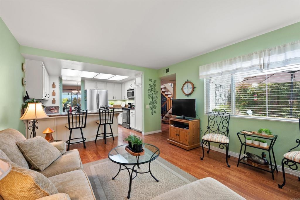 This lovely, exceptionally well cared for home, in a community where a home rarely comes on the market, is right for anyone that wants a spacious living area, which is pristine, close to shopping, restaurants and freeways. It includes all the major appliances and newer heating and a/c system. A small complex that affords quiet and beauty. The home's interior is thoughtfully painted with charming wood accents around the fireplace. It also has tons of storage. HOA includes TRASH and WATER.