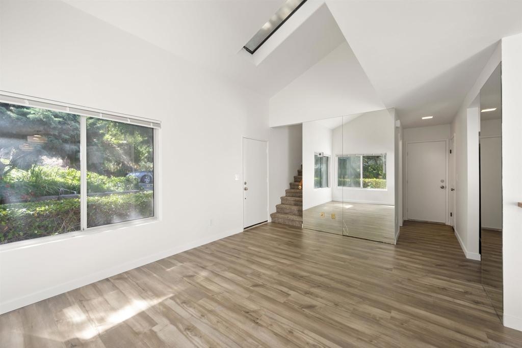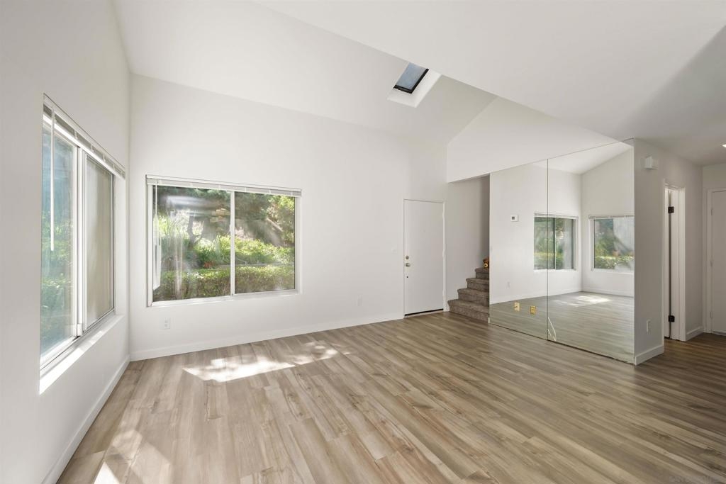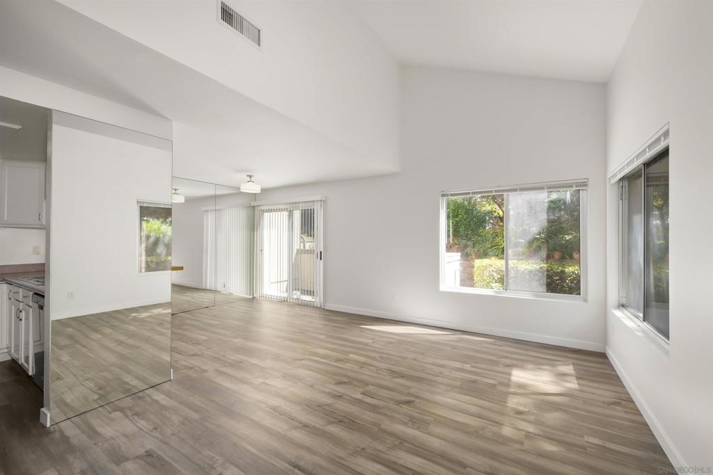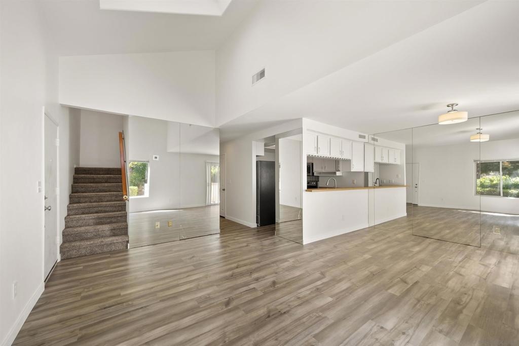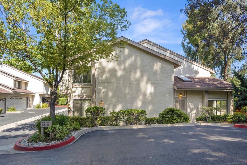 Rare opportunity for an end unit in highly sought after and coveted Strawberry Hills! One of the few PUD's with low HOA's left in San Diego County. Updated two story townhome in the heart of La Mesa with dramatic vaulted ceilings, new paint and quality flooring throughout, black and stainless kitchen appliances. This home features two generous sized bedrooms with ample closet & space. The home's abundance of windows fill the space with warm and inviting natural light. The corner location allows for a serene patio space to enjoy the shade and garden. The full sized side by side laundry facilities are located in the large two car garage with convenient access to the kitchen. This home was originally the three bedroom model and could be converted back with minimal cost or effort.